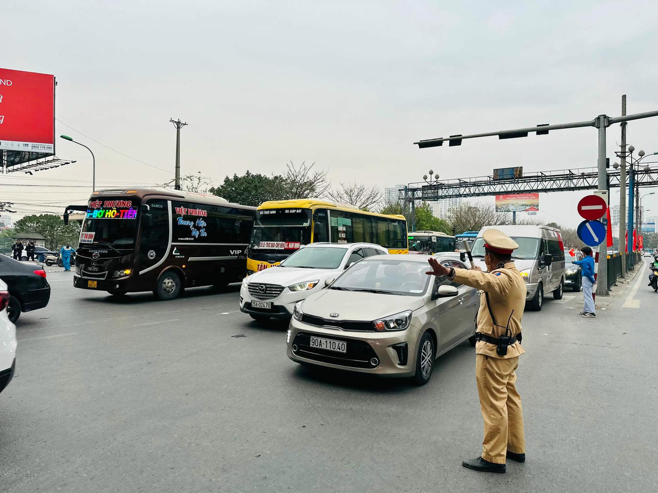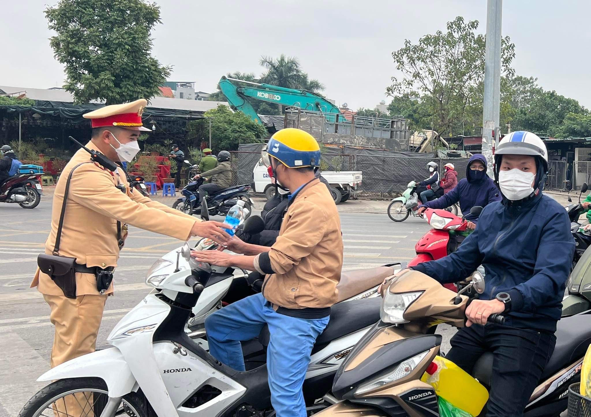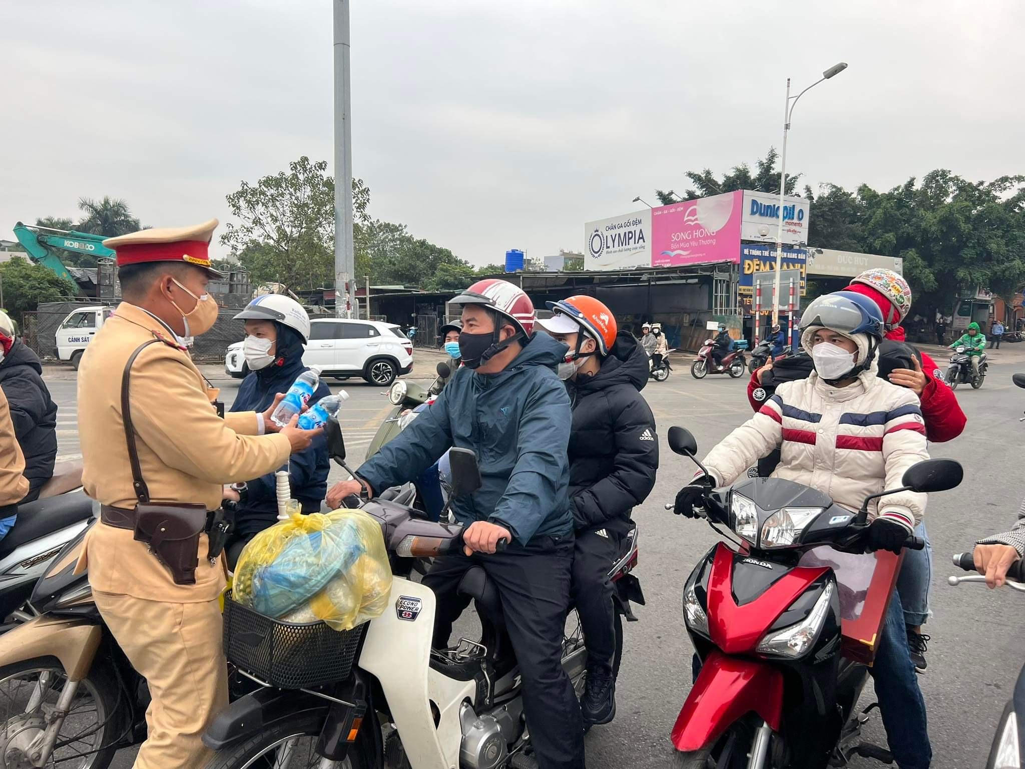 Ghi nhận cùng tổ công tác Đội CSGT số 5 ứng trực tại ngã tư Thạch Bàn - Cổ Linh, quận Long Biên, từ 16h cùng ngày, do lượng người đổ về quê và từ những vùng giáp ranh Hưng Yên, Bắc Ninh về siêu thị AEON Mall nên tuyến đường ùn ứ cả 2 đầu gây khó khăn cho lực lượng chức năng. Tuy nhiên, nhờ phân luồng hợp lý nên người và phương tiện vẫn di chuyển bình thường. Trong quá trình dừng chờ đèn tín hiệu và sự điều tiết của CSGT, người dân còn được cảnh sát giao thông tặng nước miễn phí. Trực tiếp làm nhiệm vụ trên đường, Đại uý Nguyễn Văn Yên, cán bộ Tổ công tác Đội Cảnh sát giao thông số 5 cho biết, những tình huống giải quyết ùn tắc, xử lý sự cố bất ngờ khi gặp phải luôn được tính đến nên trong quá trình làm nhiệm vụ cán bộ, chiến sĩ không bị động khi gặp phải.