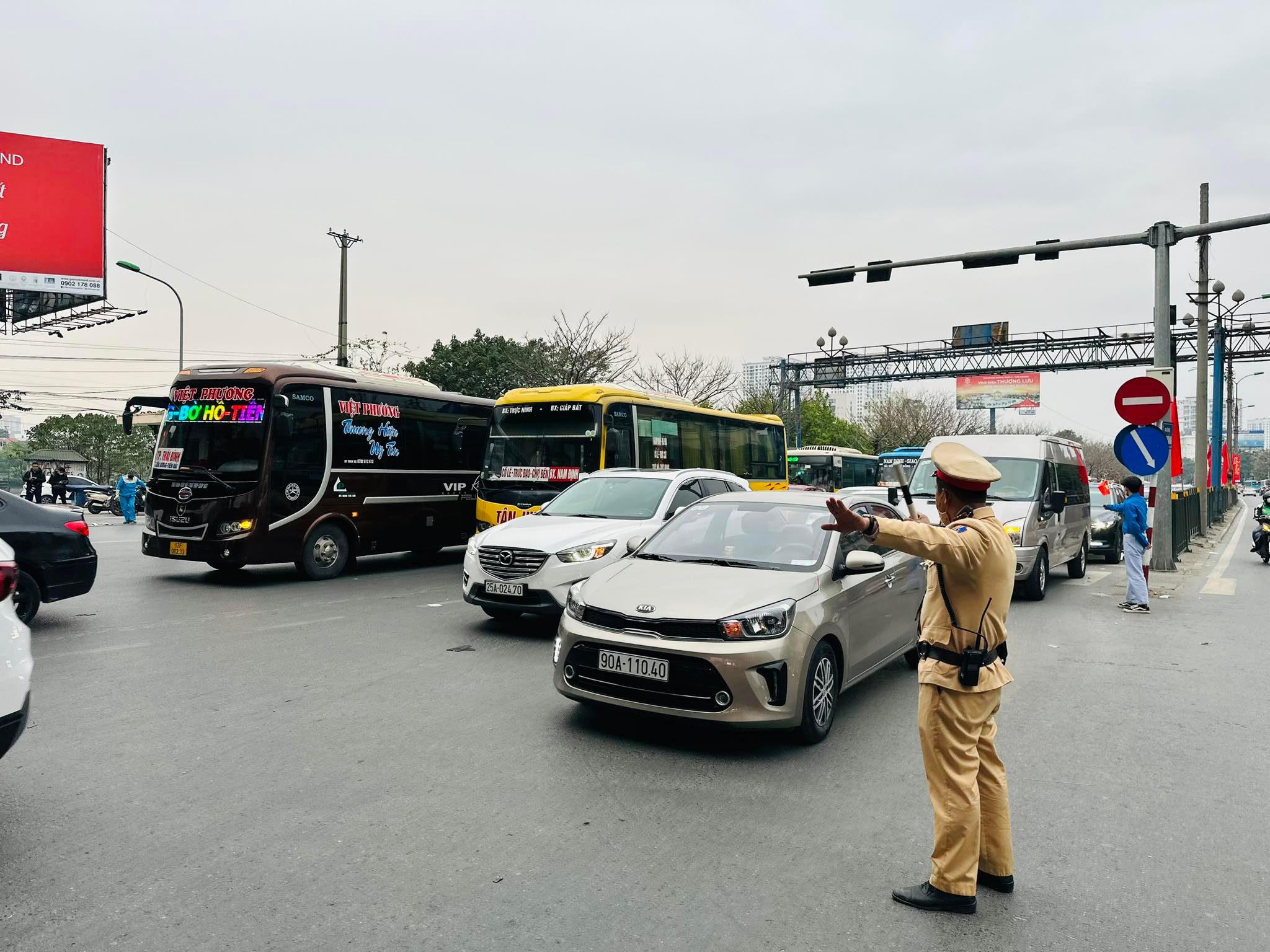 Đội CSGT số 14 trực tại Ngã tư Pháp Vân - Giải phóng phân làn cho người dân về đón Tết Quý Mão 2023 |