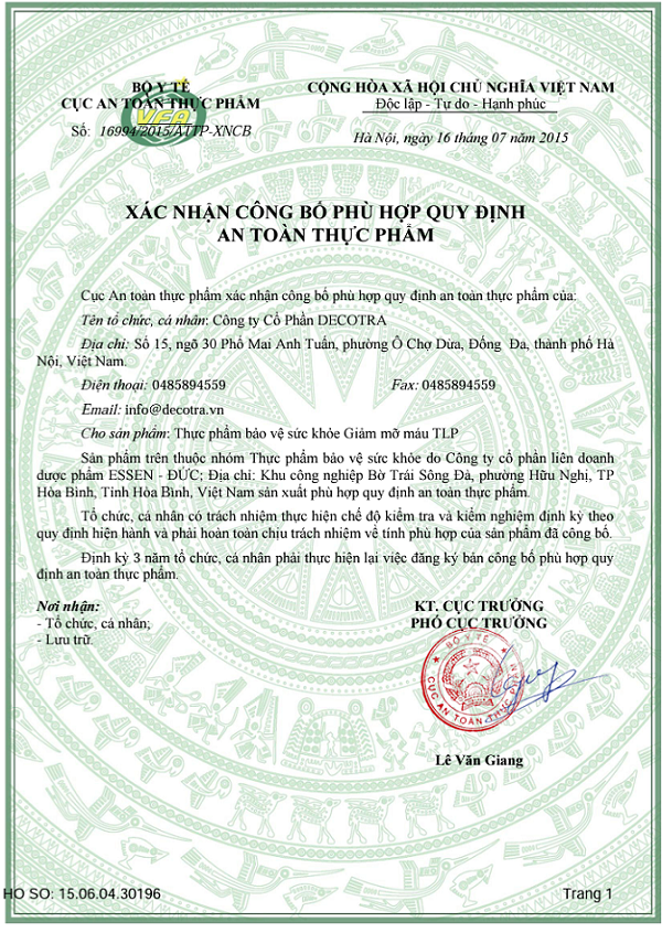 Trên thị trường tiêu dùng Việt Nam hiện nay đang lưu hành loại sản phẩm Thực phẩm chức năng tăng cường bảo vệ sức khoẻ giảm mỡ máu TLP giúp giảm mỡ máu - chống béo phì.