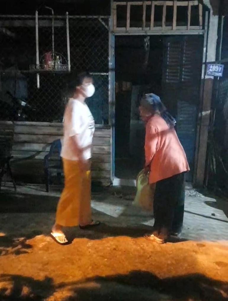 Vợ chồng anh Sang đưa cụ về nhà trong đêm. Nhờ chị Tấn kêu gọi, cộng đồng mạng xã hội còn hỗ trợ cụ Lạng 1,2 triệu đồng (Ảnh: NVCC).