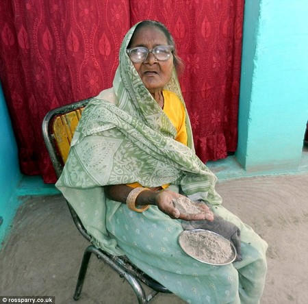 Cụ bà Sudama Devi, sống tại ngôi làng Kajri Noorpur (thuộc vùng Shahjahanpur, bang Uttar Pradesh, Ấn Độ) lần đầu tiên nếm hương vị của cát khi bà mới lên 10 tuổi, trong một lần cá cược với bạn bè.