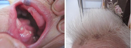 Bà Linh nói xong, cụ Hai liền há miệng ra cho chúng tôi xem. Ở cửa miệng, cụ Hai mọc tất cả 8 chiếc răng (hàm trên 4 chiếc, hàm dưới 4 chiếc). Điều đáng nói là những chiếc răng này rất nhỏ, tù như răng sữa của trẻ con. Còn 2 chiếc nằm sâu bên trong hàm, và cả hai chiếc này đều mọc ở hàm trên. Tuy nhiên, 2 chiếc răng nằm sâu bên trong hàm, lại nhọn mọc cao hơn 8 chiếc ở cửa miệng và lệch hẳn so với lợi, nhìn như răng mọc lẫy. Theo bà Linh, hai chiếc răng này mới mọc cách đây vài tháng. Việc cụ Hai mọc răng chưa có dấu hiệu dừng lại. Bởi ngoài 10 chiếc đã mọc rõ, trong lợi của cụ Hai đang có rất nhiều chân răng khác đang chuẩn bị nhú ra.