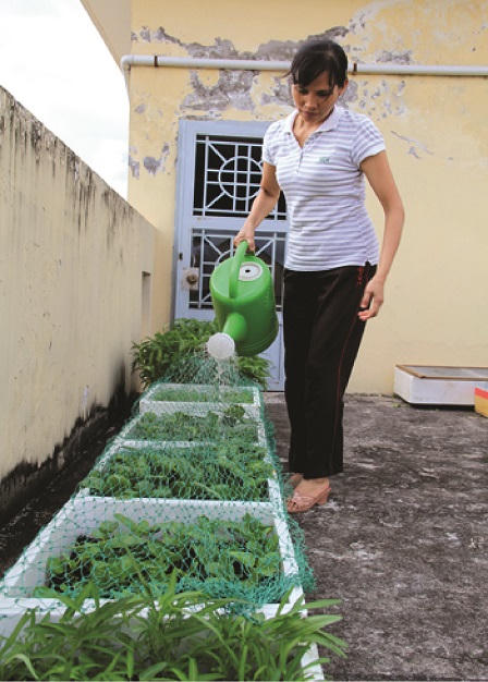 Bà Lê Thị Hiền vừa múc nước dưới hồ lên tưới rau cho biết: “Dân mỗi người một khoảnh, cũng tàm tạm đủ rau ăn. Tôi có bốn luống ngắn cơ, nhưng chị hàng xóm xin 2 luống, tôi cho luôn, vì nhà tôi ít người. Trước kia chưa trồng rau ở đây, gia đình tôi đã trồng trong thùng xốp, đặt ở ban công và tầng tum rồi. Trong phường này, nhiều hộ tận dụng như vậy lắm!”.