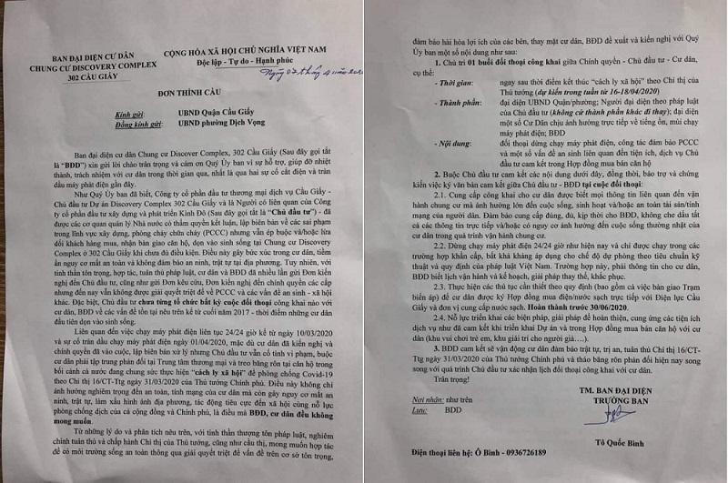 Khi nhận được phản hồi này của CĐT, nhiều cư dân của chung cư đã vô cùng bức xúc. Theo Trưởng Ban đại diện cư dân, việc các cư dân không được hưởng chính sách hỗ trợ của Chính phủ là do lỗi từ phía CĐT. Bởi lẽ chung cư Discovery vẫn chưa được nghiệm thu PCCC dẫn đến việc cư dân chưa được ký hợp đồng mua điện trực tiếp từ Công ty Điện lực Cầu Giấy.
