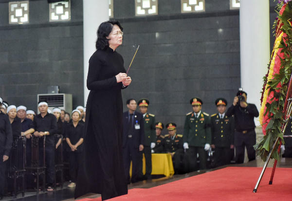 | Quyền Chủ tịch nước Đặng Thị Ngọc Thịnh viếng Chủ tịch nước Trần Đại Quang. Ảnh: Giang Huy/Vnexpress.net |