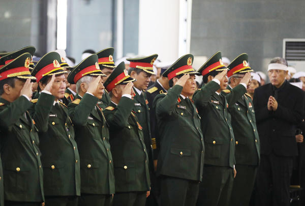 Linh cữu đồng chí Đỗ Mười quàn tại Nhà Tang lễ quốc gia số 5 Trần Thánh Tông, Hà Nội.