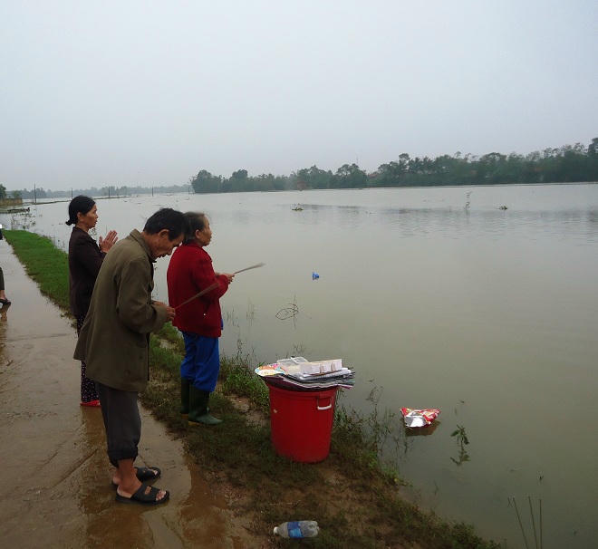 “Tôi vừa kêu vừa khóc vì sợ chồng mình cũng gặp nạn. Lúc này đường không có người đi lại, tôi chỉ biết la hét. Cũng may, khi đó có 4 thanh niên bẫy chuột đi ngang qua. Tôi cùng với cậu Dương Văn Tân (32 tuổi, thôn Vân Khê) chèo đò ra, hợp sức đưa cháu gái lên bờ”. Ông Phước và em Hằng lên bờ toàn thân họ tím tái vì lạnh. Cả hai sau đó được người dân sơ cứu, đốt lửa sưởi ấm rồi khỏe lại.