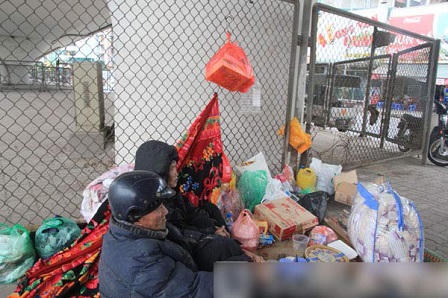 Thế nên, suốt 14 năm, đôi vợ chồng già rời mảnh đất chôn nhau cắt rốn Sơn Tây, lang thang phiêu bạt, khi Hà Nội, lúc Hòa Bình. Công việc của họ là làm mướn, nhặt rác... Nhưng chân bà Hợp ngày càng bị sưng tấy và đau nặng, không đi lại được nên cụ Hậu phải ở cạnh trông nom bà, không đi nhặt rác, làm thuê nữa. Tết Nguyên đán Giáp Ngọ vừa qua, hai ông bà quyết định đưa nhau ra khu vực cầu vượt Ngã Tư Vọng sống qua ngày. Trước cảnh ngộ éo le của đôi bạn già, lãnh đạo phường sở tại đã tạo điều kiện đưa hai người vào Trung tâm Bảo trợ xã hội số 1 chăm sóc.