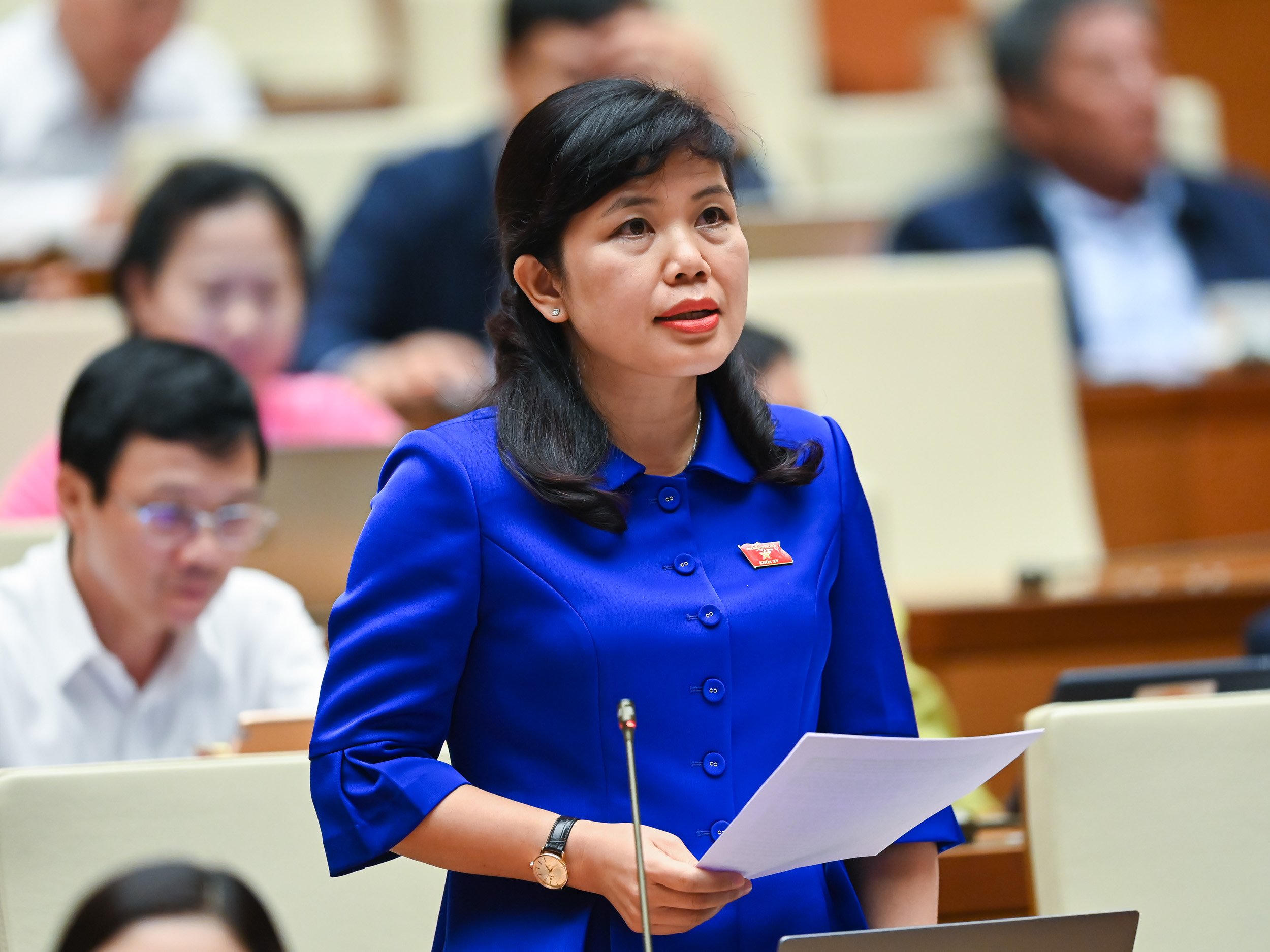 Đại biểu Nguyễn Thị Thu Hà phát biểu tại phiên họp. |