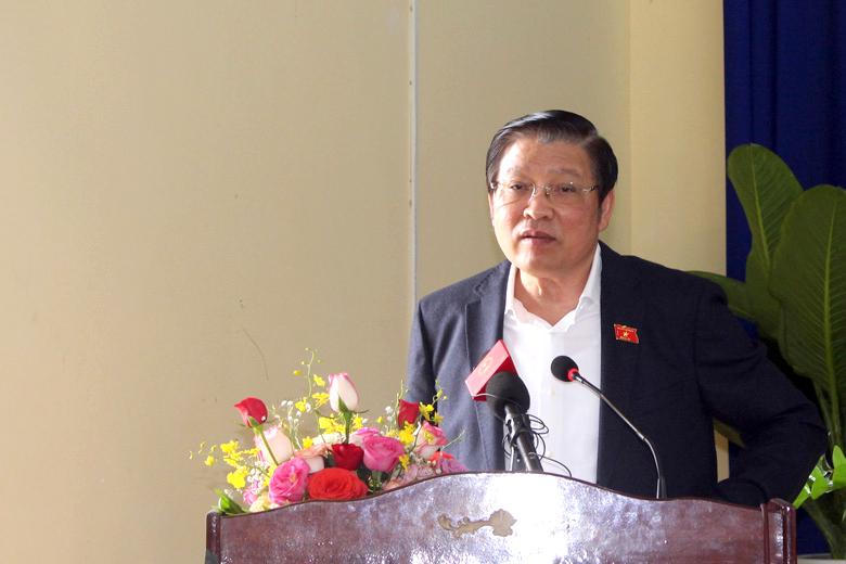 Ủy viên Bộ Chính trị, Bí thư Trung ương Đảng, Trưởng Ban Nội chính Trung ương Phan Đình Trạc phát biểu tại buổi tiếp xúc cử tri. |