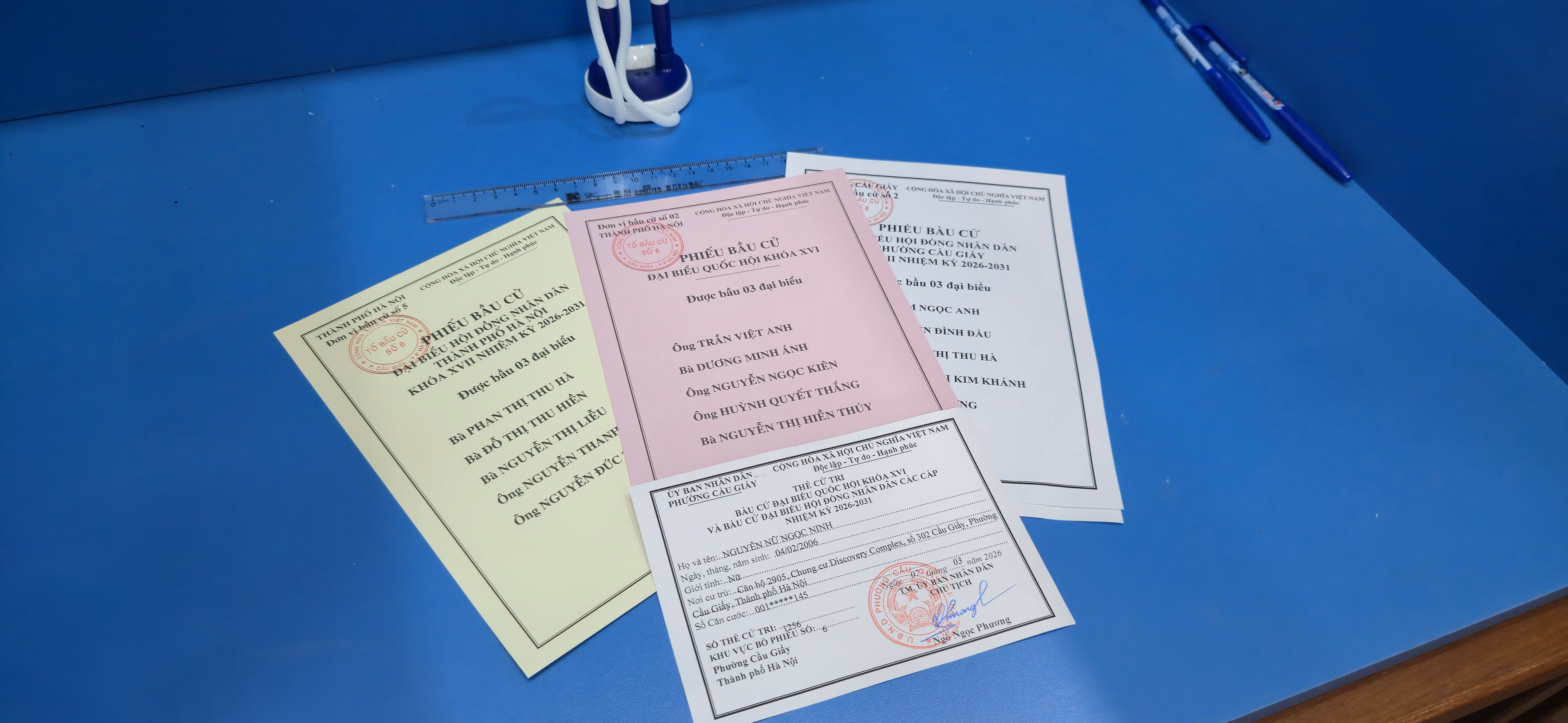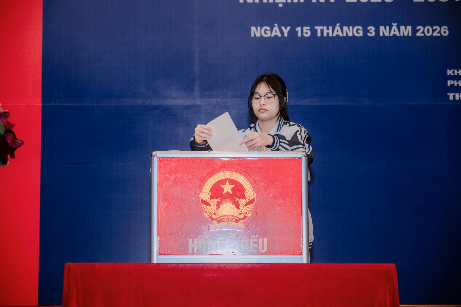 Trong dòng người đến thực hiện quyền công dân tại khu vực bỏ phiếu số 6 phường Cầu Giấy, cử tri Nguyễn Nữ Ngọc Ninh (sinh năm 2006) là một trong những người lần đầu tham gia bỏ phiếu. Nữ cử tri trẻ cho biết cảm thấy phấn chấn và xúc động khi được trực tiếp tham gia một sự kiện chính trị quan trọng của đất nước.