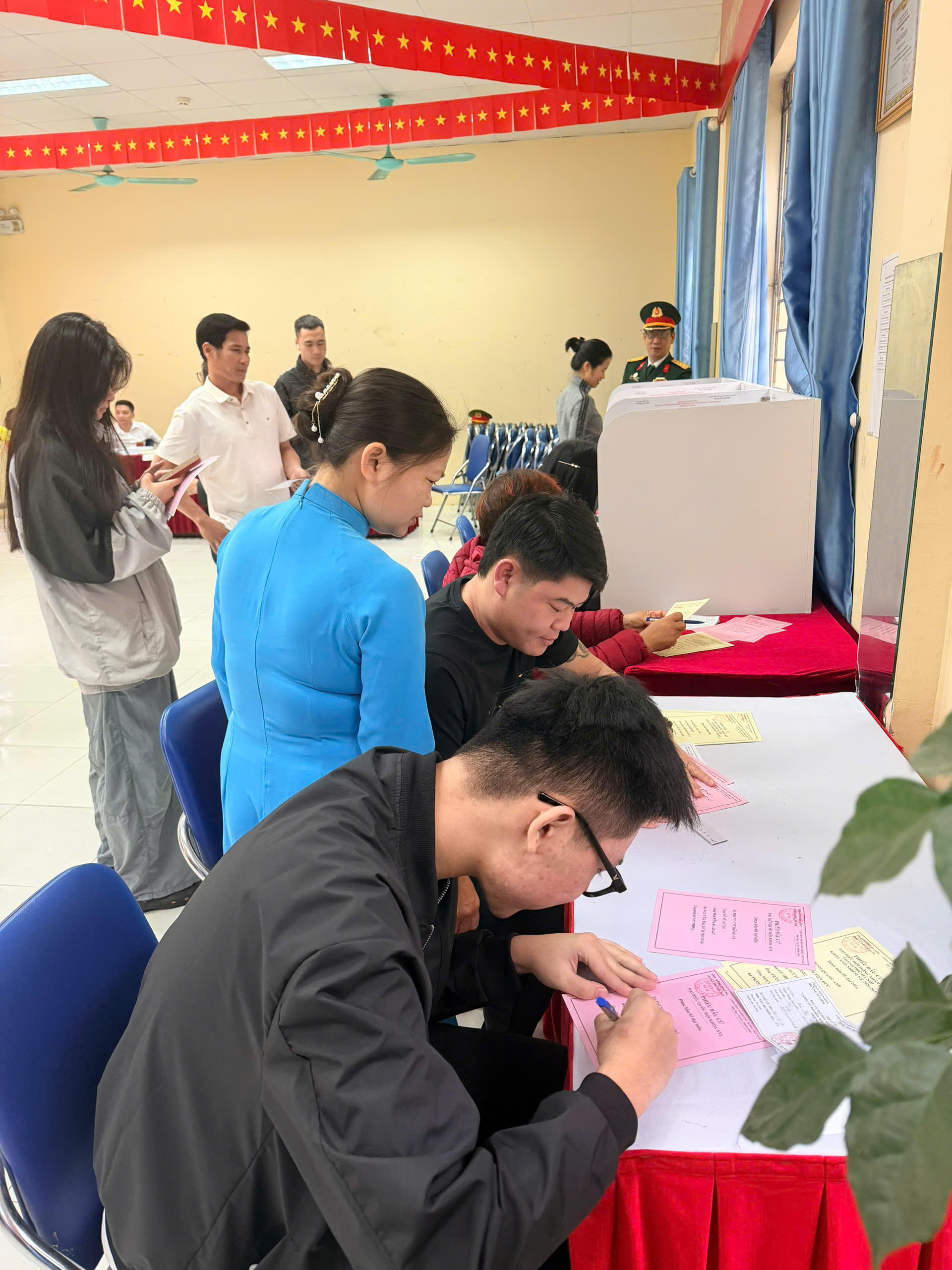 Theo ông Hùng, đến khoảng 8 giờ sáng, điểm bầu cử đã ghi nhận khoảng 150 cử tri tham gia bỏ phiếu, đạt hơn 10% tổng số cử tri trong khu vực. Riêng tại Tổ dân phố số 10, tinh thần tham gia của người dân khá tích cực. “Bà con trong tổ rất nhiệt tình, nhiều cử tri đến từ sớm để thực hiện quyền và nghĩa vụ của mình”, ông Hùng chia sẻ.