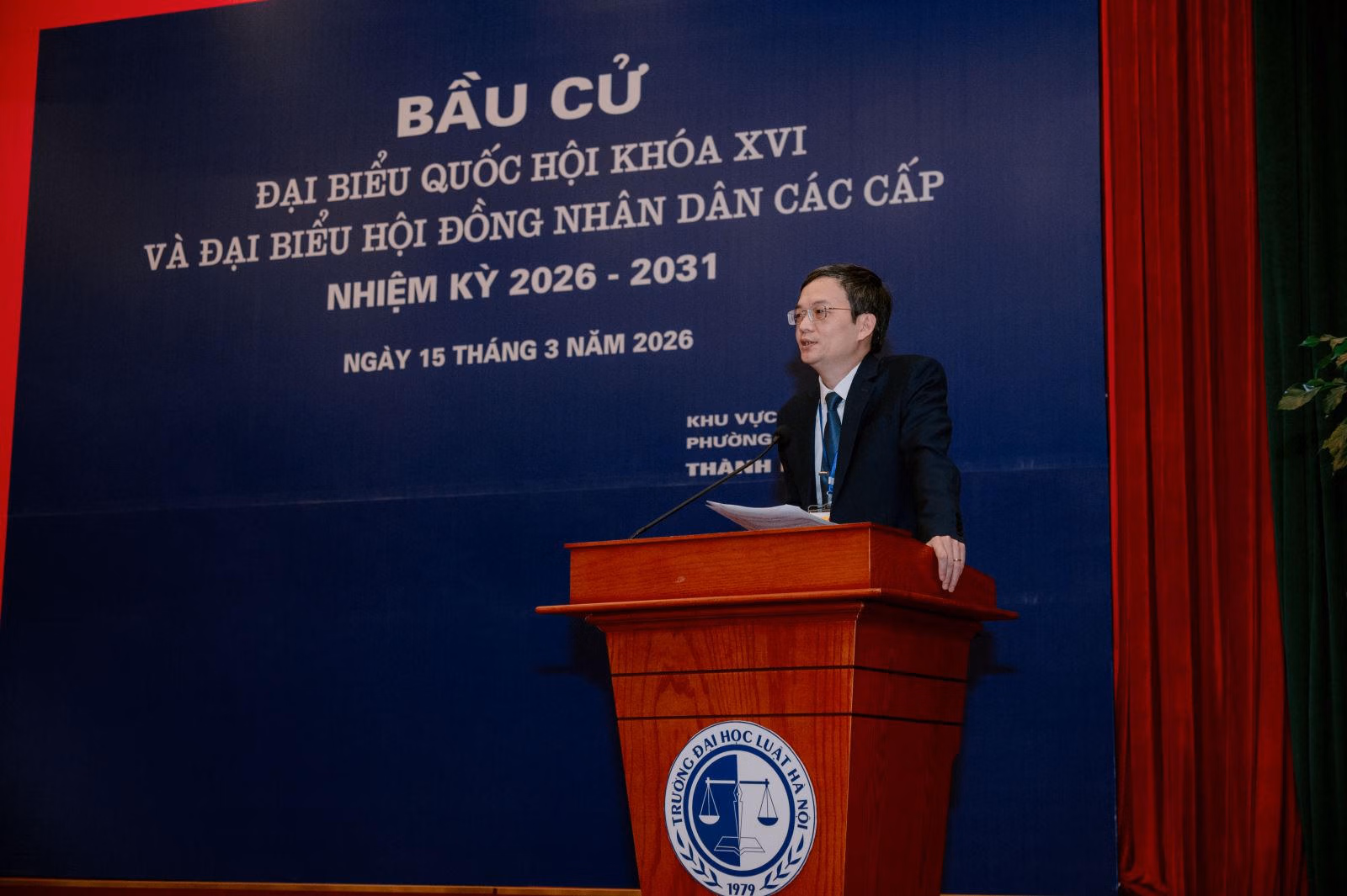 Về phía Trường Đại học Luật Hà Nội, PGS.TS. Nguyễn Bá Bình, Phó Hiệu trưởng nhà trường, Tổ trưởng Tổ bầu cử số 25 chủ trì buổi lễ; cùng tham dự còn có ThS. Nguyễn Sơn Tùng, Trưởng phòng Công tác sinh viên, Tổ phó Tổ bầu cử cùng các thành viên Tổ bầu cử số 25. Đặc biệt, buổi lễ có sự tham dự của đông đảo cử tri là các bạn sinh viên thuộc danh sách cử tri ở Tổ bầu cử số 25.