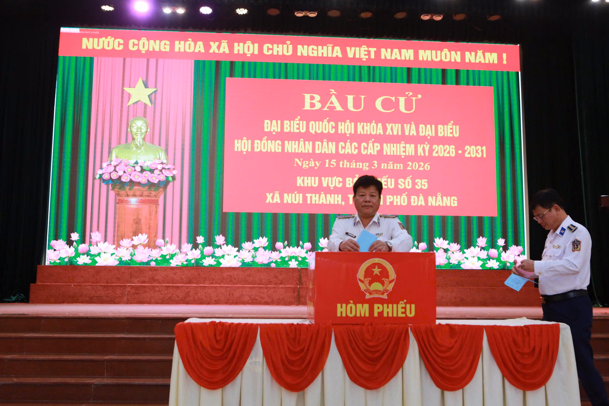 Sau nghi thức khai mạc, Trung tướng Lê Ngọc Hải, Tư lệnh Quân khu 5 đã bỏ lá phiếu đầu tiên, các cử tri sau đó lần lượt thực hiện quyền bầu cử trong không khí trang nghiêm, trật tự, thể hiện tinh thần trách nhiệm và niềm tin vào sự kiện chính trị trọng đại của đất nước.