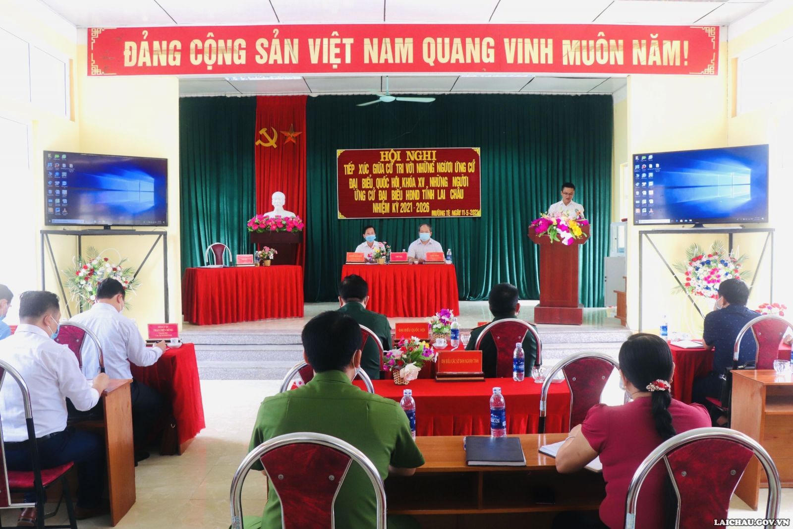 (PLVN) - Ngày 11/5, Ban Thường trực Ủy ban Mặt trận Tổ quốc Việt Nam tỉnh Lai Châu tổ chức hội nghị tiếp xúc giữa cử tri tại xã Mường Tè, huyện Mường Tè (Lai Châu) với người ứng cử đại biểu Quốc hội khóa XV, những người ứng cử đại biểu HĐND tỉnh Lai Châu nhiệm kỳ 2021-2026.