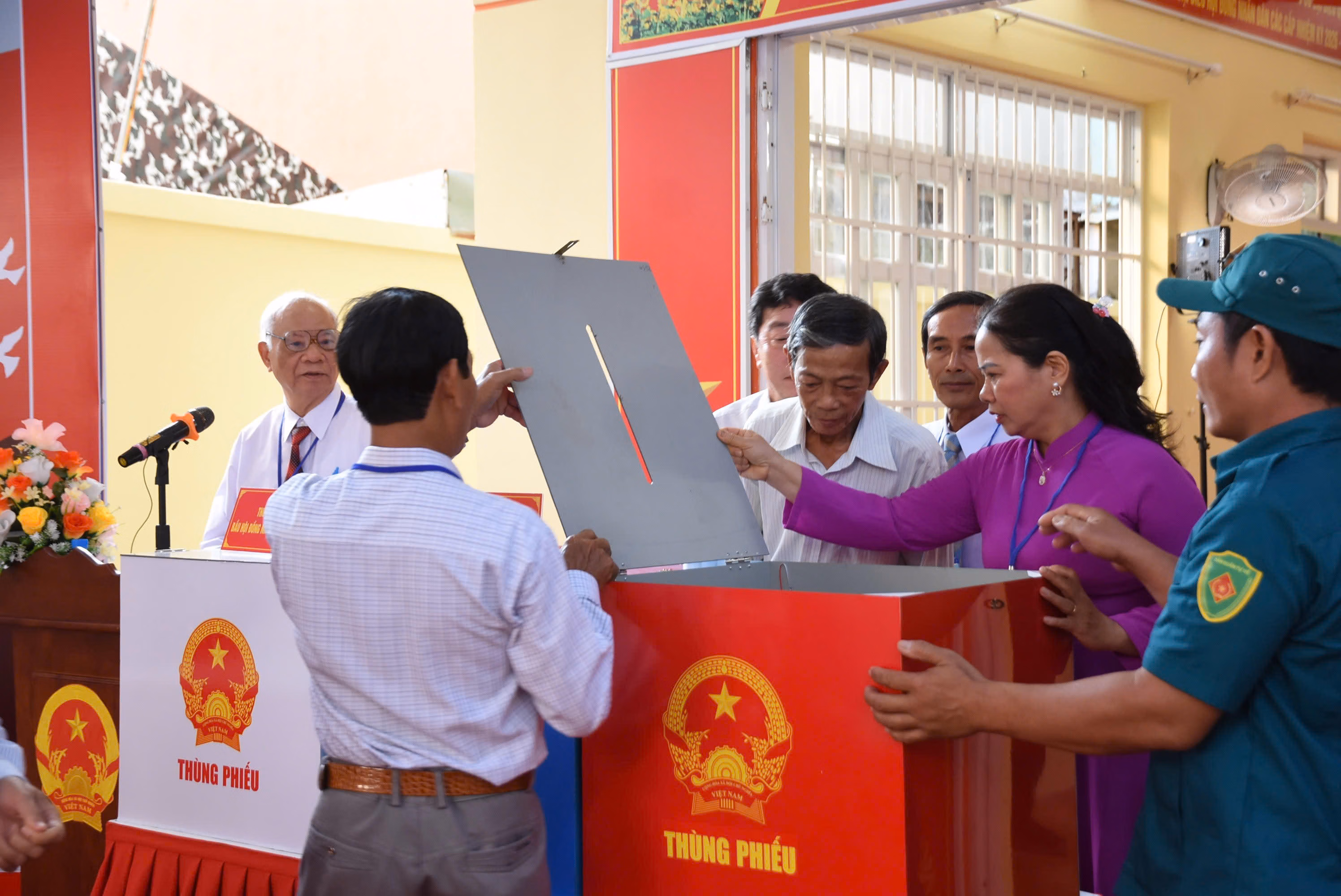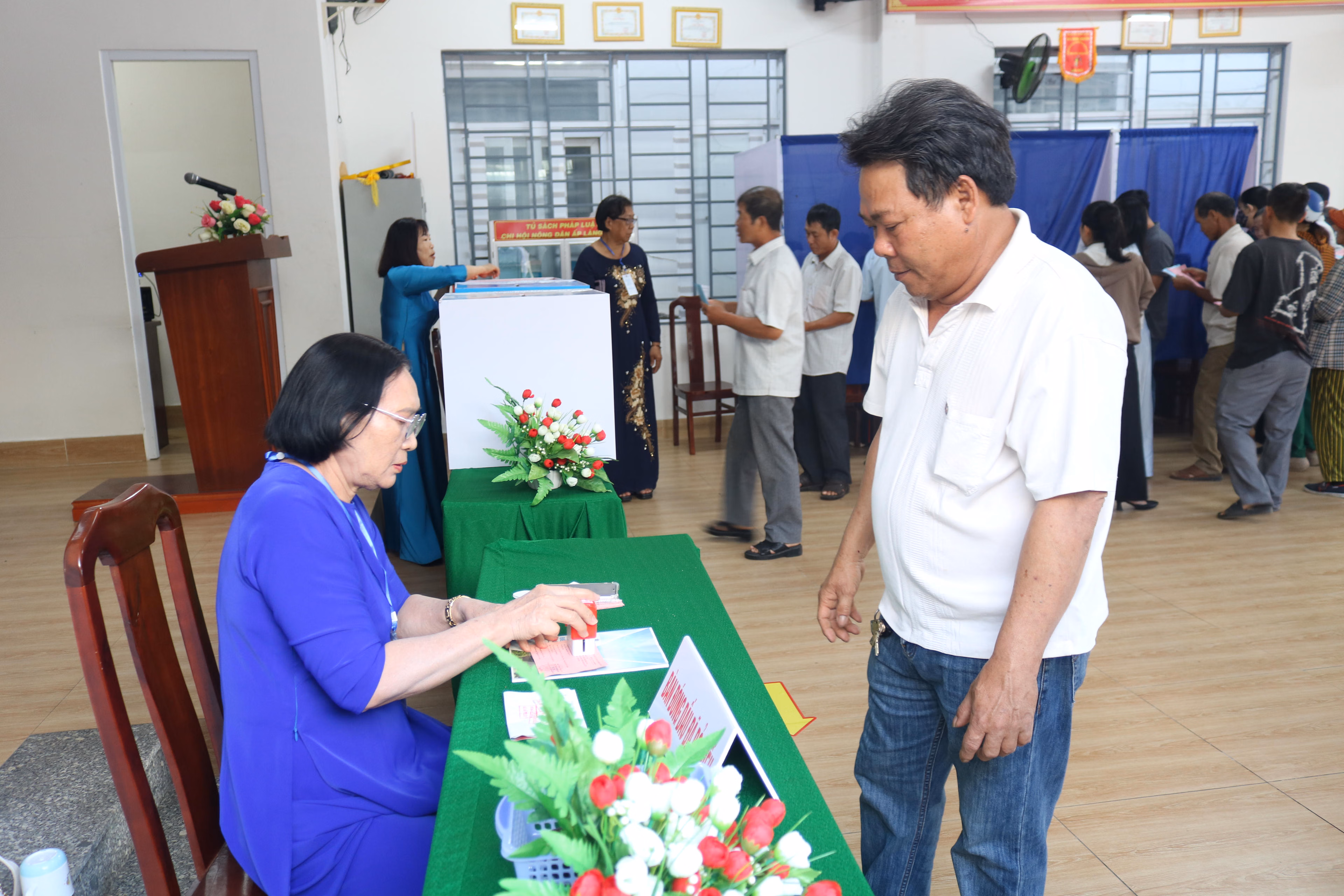 Sau phần khai mạc, phổ biến nội quy và hướng dẫn quy trình bỏ phiếu, các cử tri lần lượt nhận phiếu, vào khu vực bỏ phiếu kín để lựa chọn những ứng cử viên mà mình tín nhiệm. Sau đó, cử tri trực tiếp bỏ phiếu vào thùng phiếu theo đúng quy định, ký xác nhận đã tham gia bỏ phiếu rồi ra về. Dòng người đến bỏ phiếu liên tục trong buổi sáng cho thấy sự quan tâm, ý thức trách nhiệm và tinh thần làm chủ của cử tri địa phương đối với sự kiện chính trị quan trọng này.