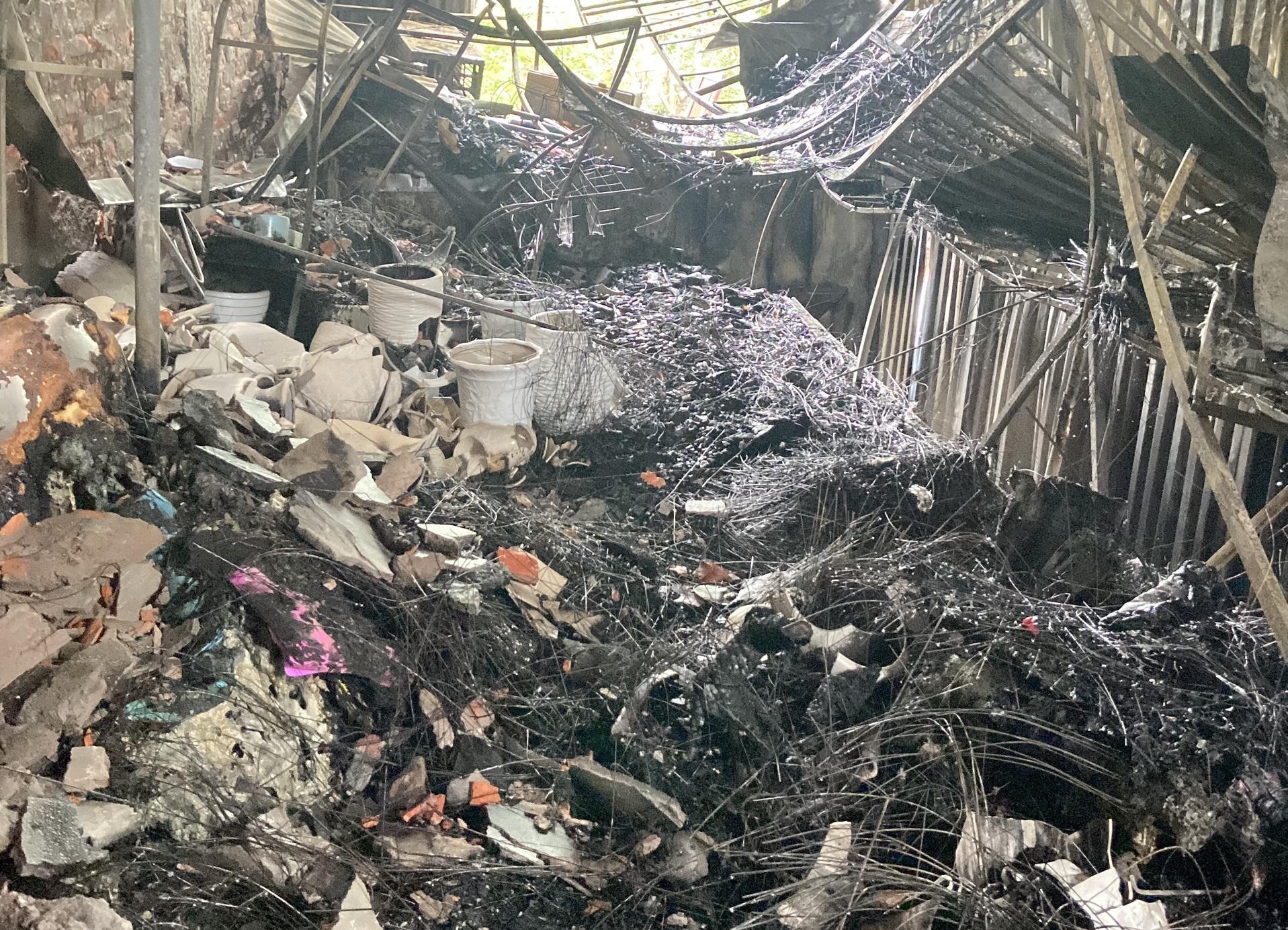 Tại hiện trường, ngôi nhà bị cháy có kết cấu mái tôn, tường xây gạch, 1 tầng, bên trong có 1 gác xép diện tích khoảng 10m2; khu vực cháy khoảng 30m2 nằm ở phía sau là phần mái lán, khung thép mái tôn, tường bao tôn, chất cháy là hàng hóa hoa giả và đồ dùng gia đình.
