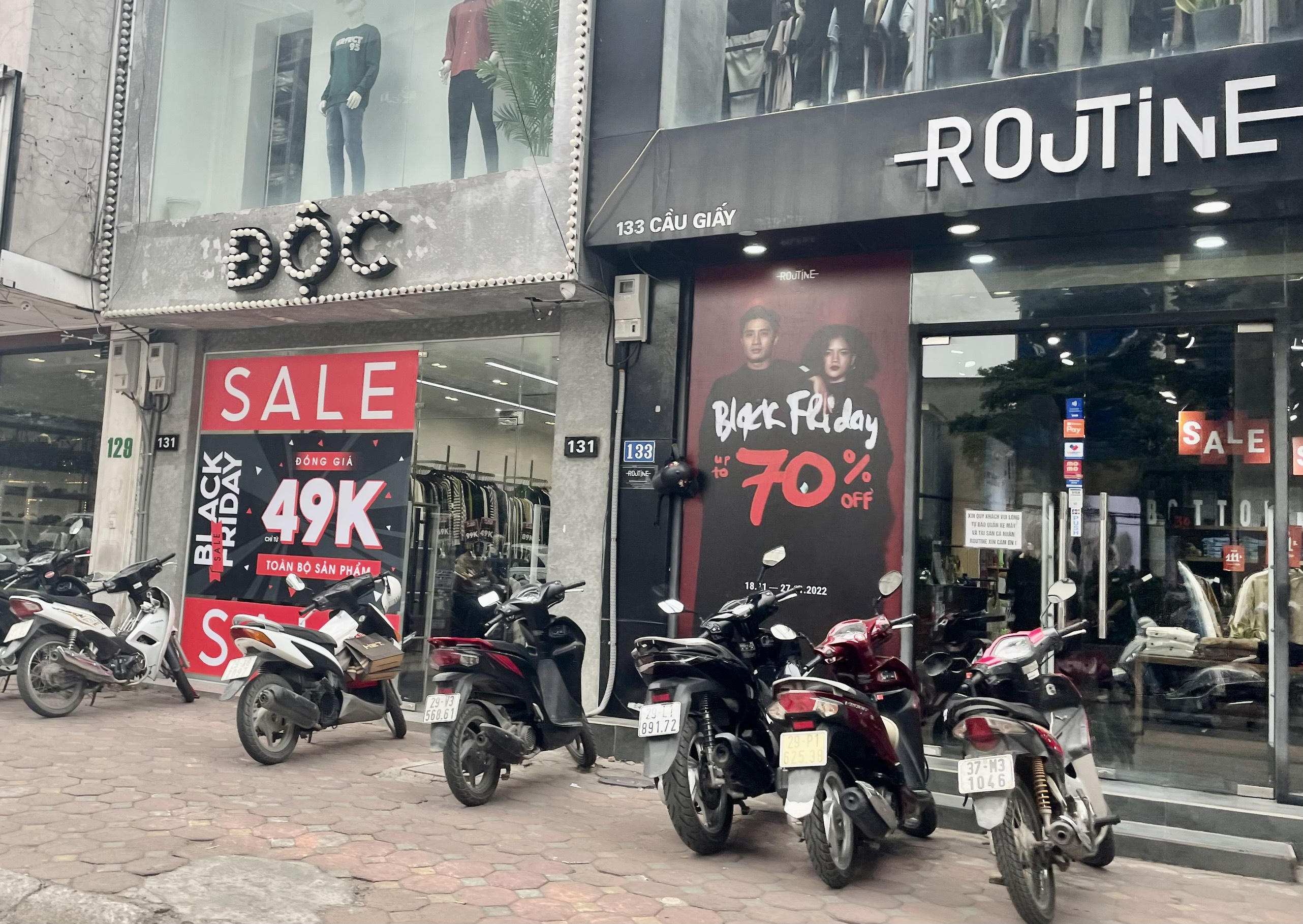 Phóng viên Báo Pháp luật Việt Nam ghi nhận, trên nhiều tuyến phố Hà Nội như Xuân Thủy, Cầu Giấy, Hồ Tùng Mậu (quận Cầu Giấy), Chùa Láng, Trần Duy Hưng, Chùa Bộc, Thái Hà (quận Đống Đa) và một số Trung tâm thương mại như Indochina Plaza Hanoi (Cầu Giấy), Vincom Nguyễn Chí Thanh (Đống Đa)..., nhiều gian hàng thời trang, mỹ phẩm, phụ kiện, đồ gia dụng, đồ công nghệ... bắt đầu chạy các chương trình khuyến mãi dịp Black Friday.