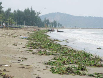 Do ảnh hưởng của thời tiết, từ ngày 30/4 đến nay, bãi biển Cửa Lò bị một lượng lớn rong, bèo biển và các loại rác từ biển trôi dạt lên bãi tắm.