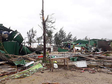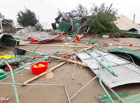 Cửa Lò xác xơ sau lốc xoáy, mái nhà rách toác vo thành đống