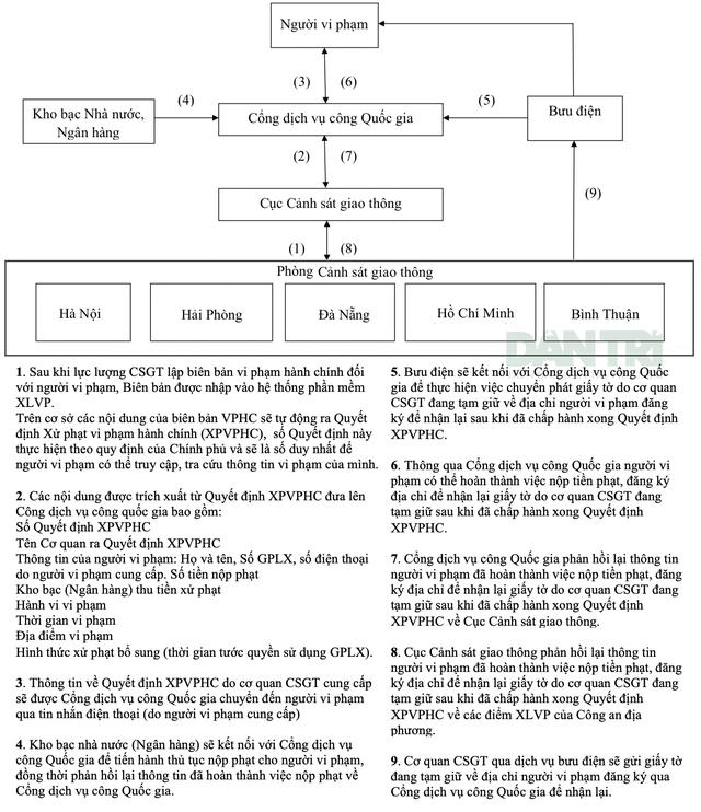 Cục CSGT (Bộ Công an) hướng dẫn người dân Hà Nội, Hải Phòng, Đà Nẵng, Tp Hồ Chí Minh và Bình Thuận quy trình nộp phạt vi phạm hành chính trong lĩnh vực giao thông và nhận giấy tờ tại nhà.