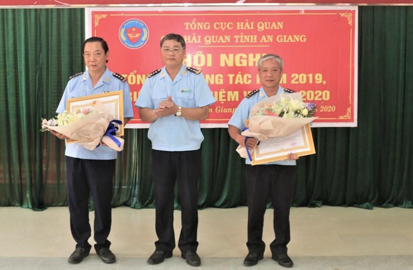 Thừa ủy quyền Chủ tịch nước, Cục trưởng Cục Hải quan tỉnh An Giang Trần Quốc Hoàn, trao Huân chương Lao động hạng Nhì cho ông Dương Sen Hải - Chi cục Trưởng Chi cục Hải quan cửa khẩu Vĩnh Xương (huyện Tân Châu, An Giang) và ông Trần Tấn Lợi - Đội trưởng, Đội Kiểm soát Hải quan (Cục Hải quan tỉnh An Giang)