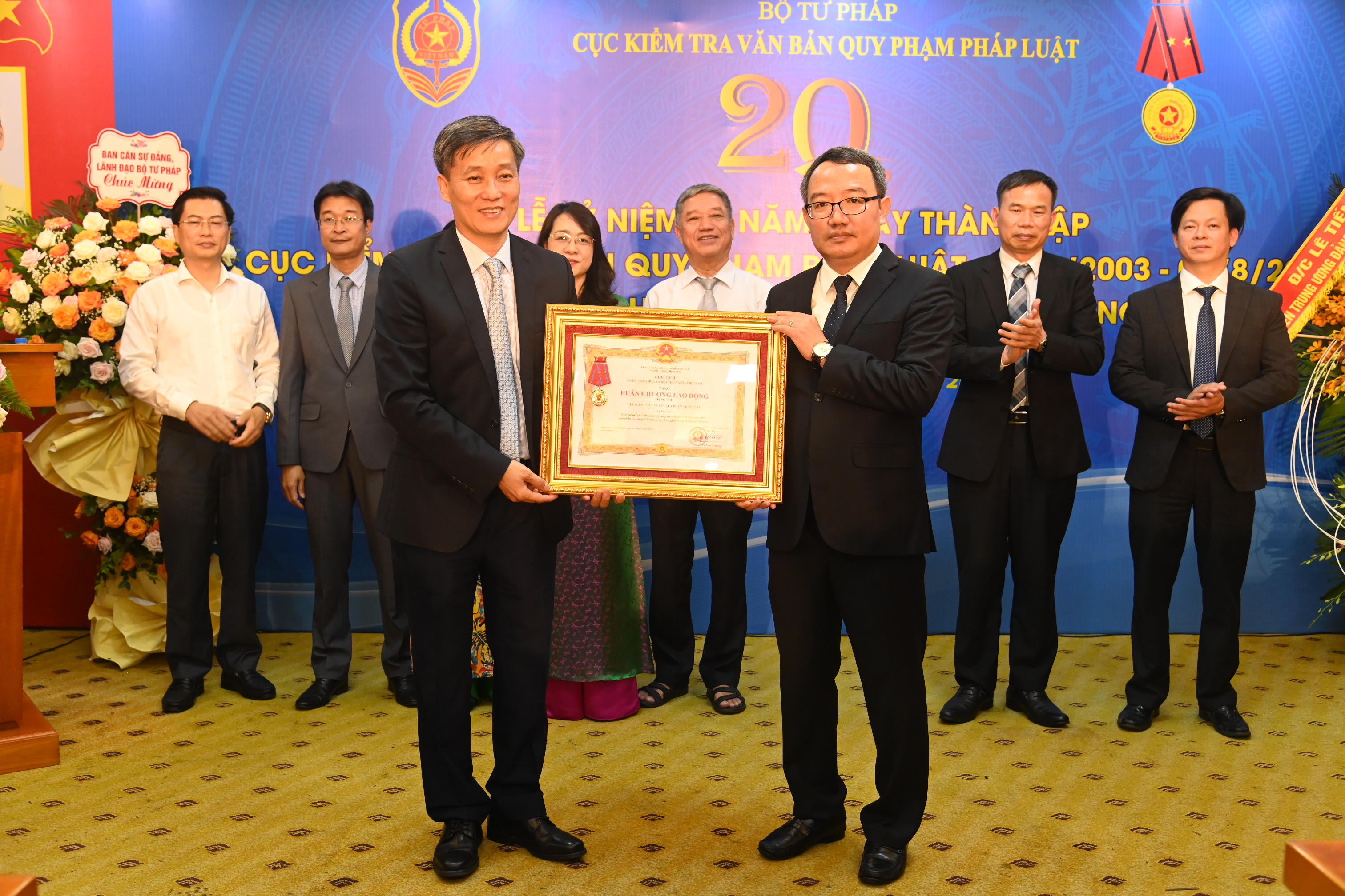 Với nỗ lực phấn đấu không ngừng và những đóng góp quan trọng, thiết thực, hiệu quả, Cục Kiểmtra VBQPPL vinh dự được Chủ tịch nước trao tặng Huân chương Lao động hạng Nhì - phần thưởng cao quý của Đảng, Nhà nước. Đây là phần thưởng có ý nghĩa to lớn, thể hiện sự ghi nhận của Đảng, Nhà nước và Lãnh đạo Bộ Tư pháp đối với những đóng góp cho sự nghiệp xây dựng, phát triển đất nước của Cục Kiểm tra VBQPPL trong 20 năm qua.