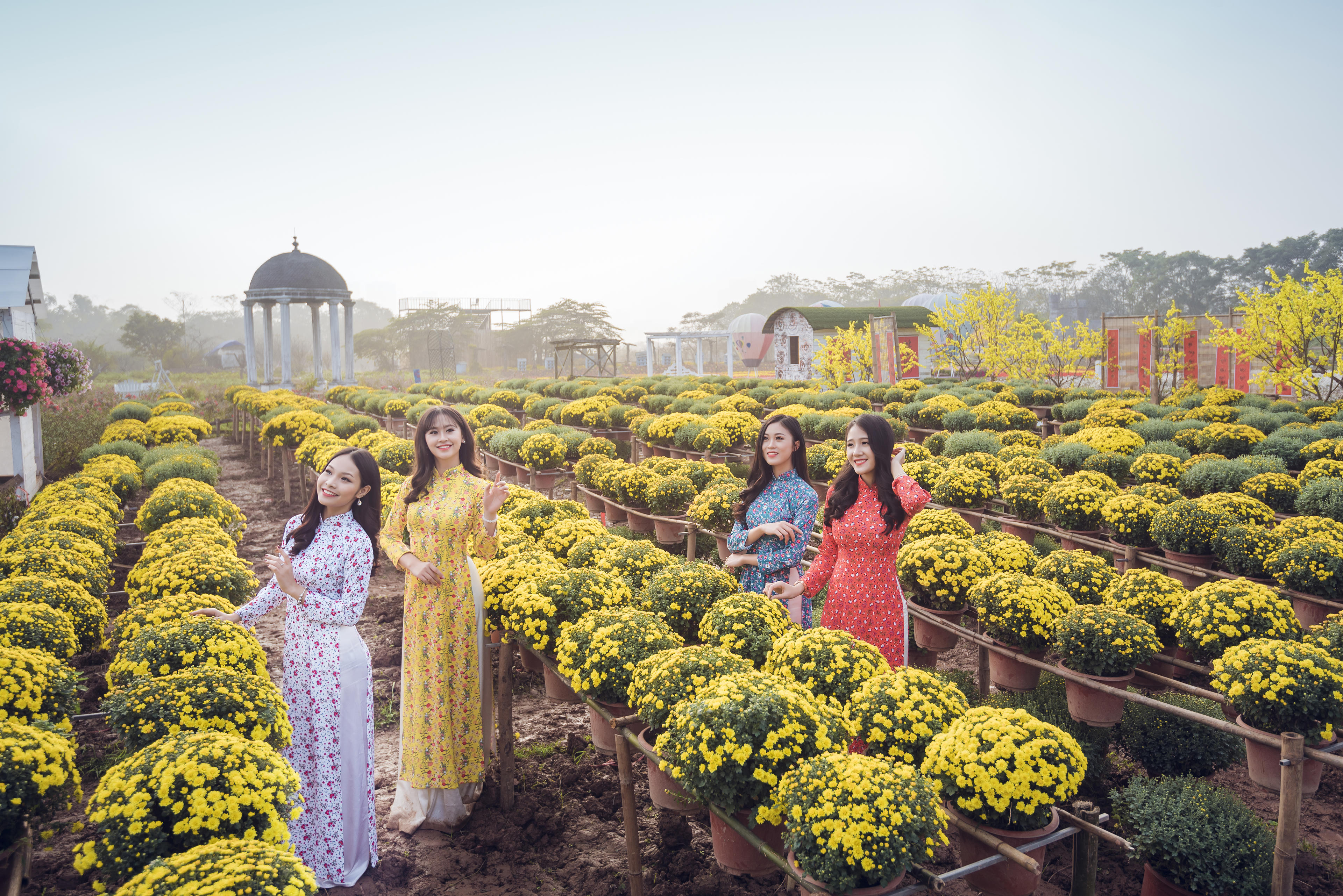 Người phương Nam không còn lạ gì với sắc vàng của cúc mâm xôi mỗi dịp xuân về. Nhưng đối với người Bắc, có lẽ đây là lần đầu tiên du khách được chứng kiến cả vườn cúc mâm xôi rộng 3000m2 tại Hà Nội.