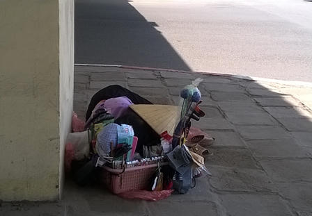 Trong cái nắng như thiêu như đốt, nhiều cụ bà tuổi đã ngoài thất thập vẫn phải đi bộ cả chục kilomet mỗi ngày để bán dạo những cuộn bông gòn, móc chìa khóa…mặc dù lời lãi chả đáng là bao nhiêu.