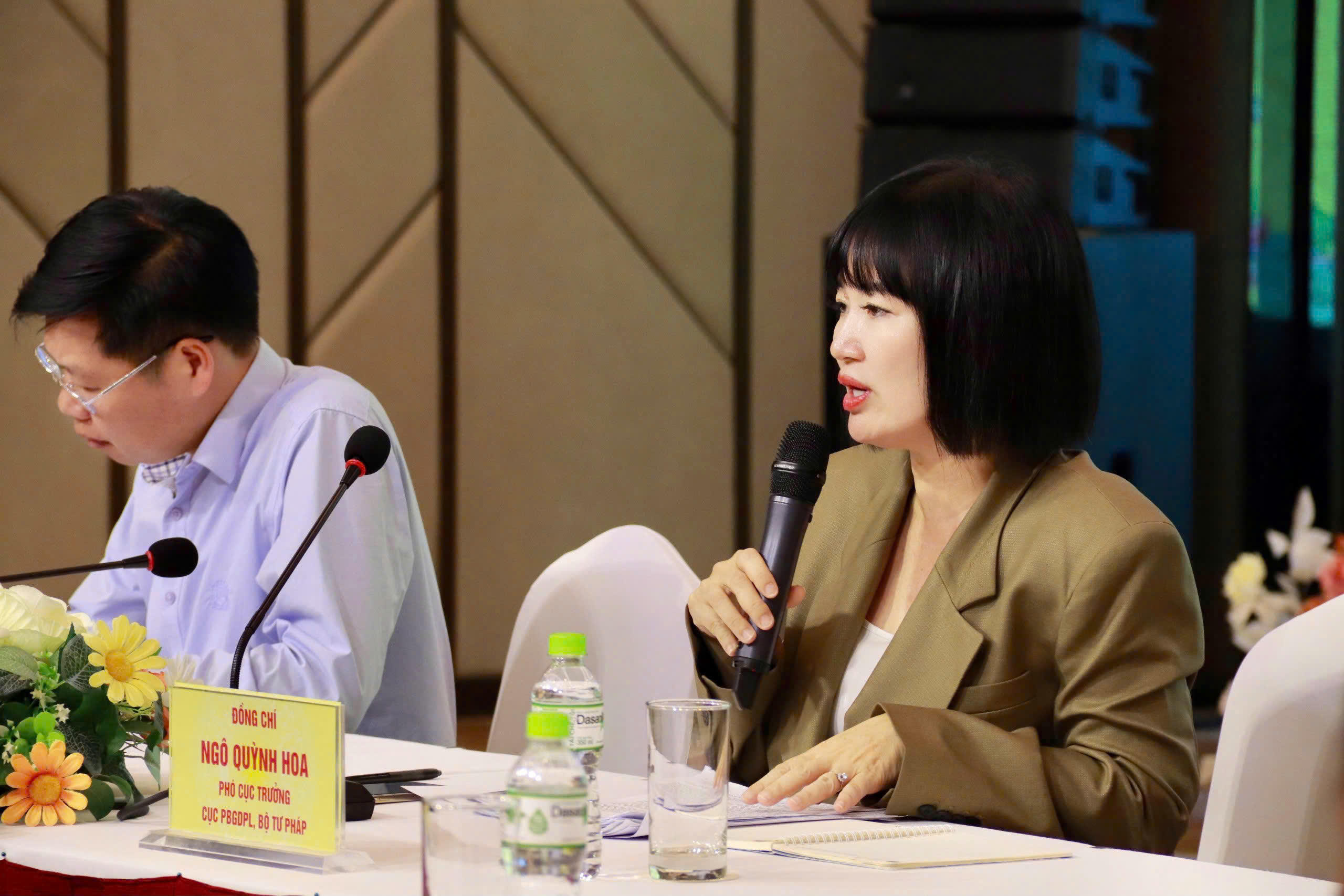 TS. Ngô Quỳnh Hoa, Phó Cục trưởng Cục Phổ biến, giáo dục pháp luật, Bộ Tư pháp phát biểu tại hội thảo |