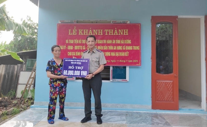 (PLVN) - Mới đây, Cục THADS tỉnh Hải Dương đã phối hợp với Đảng ủy - Mặt trận tổ quốc, HĐND, UBND xã Quang Trung, huyện Tứ Kỳ và chính quyền, nhân dân thôn An Hưng tổ chức lễ khánh thành và trao tiền hỗ trợ của các cơ quan THADS tỉnh cùng các tập thể, cá nhân cho hộ gia đình ông Phạm Văn Kiên xây dựng nhà Đại đoàn kết.