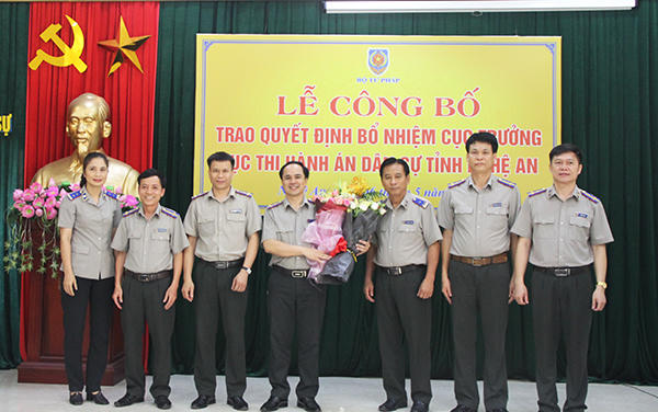 (PLVN) - Sáng ngày 6/5, Thứ trưởng Bộ Tư pháp Đặng Hoàng Oanh dự lễ Công bố quyết định bổ nhiệm Cục trưởng Cục Thi hành án (THADS) Nghệ An cho ông Phạm Quốc Nam.
