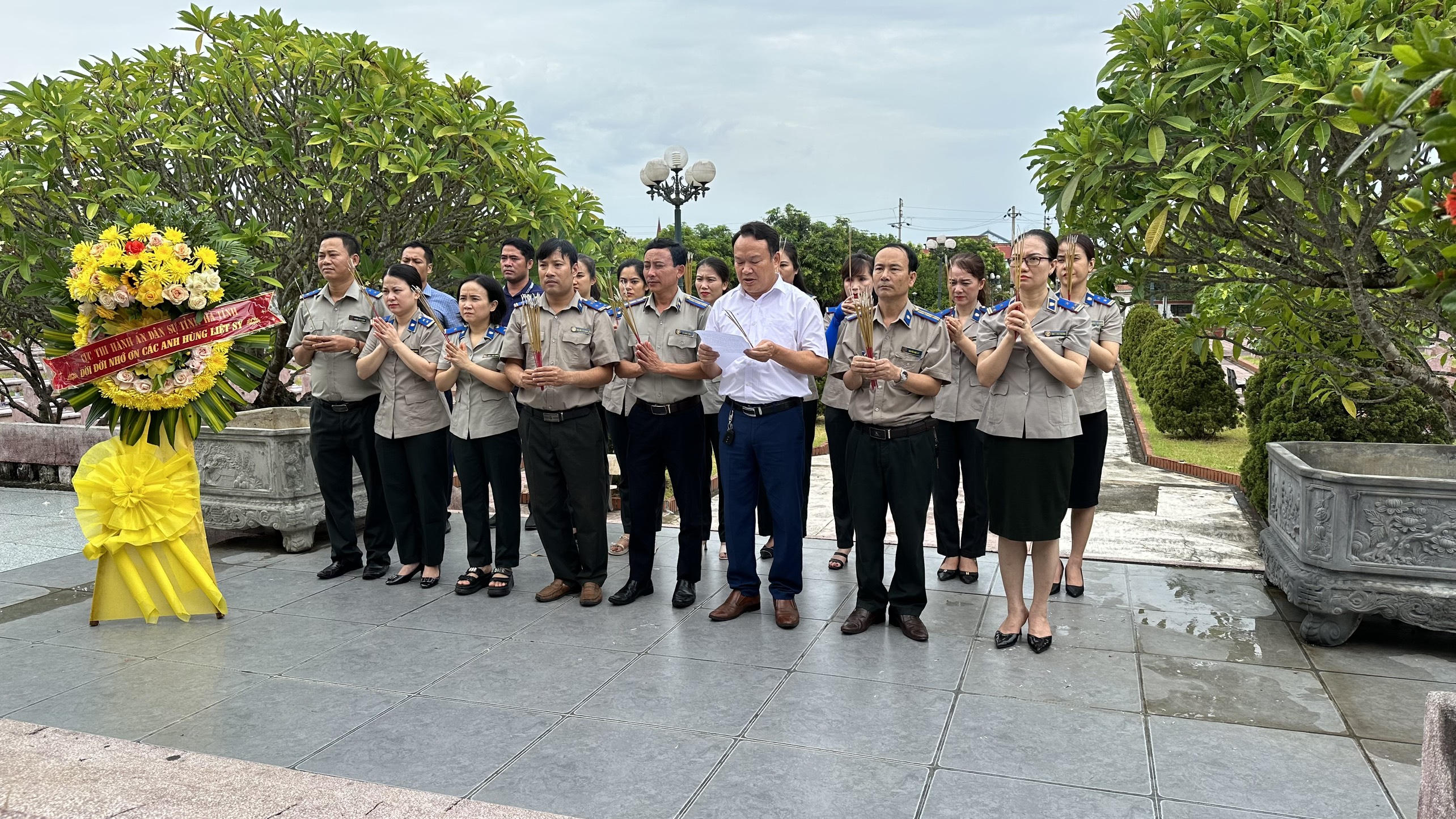 Lãnh đạo Cục THADS Hà Tĩnh đã đến dâng hương, đặt vòng hoa tri ân các anh hùng, liệt sỹ tại nghĩa trang liệt sỹ Núi Nài. Ảnh: Hữu Anh |