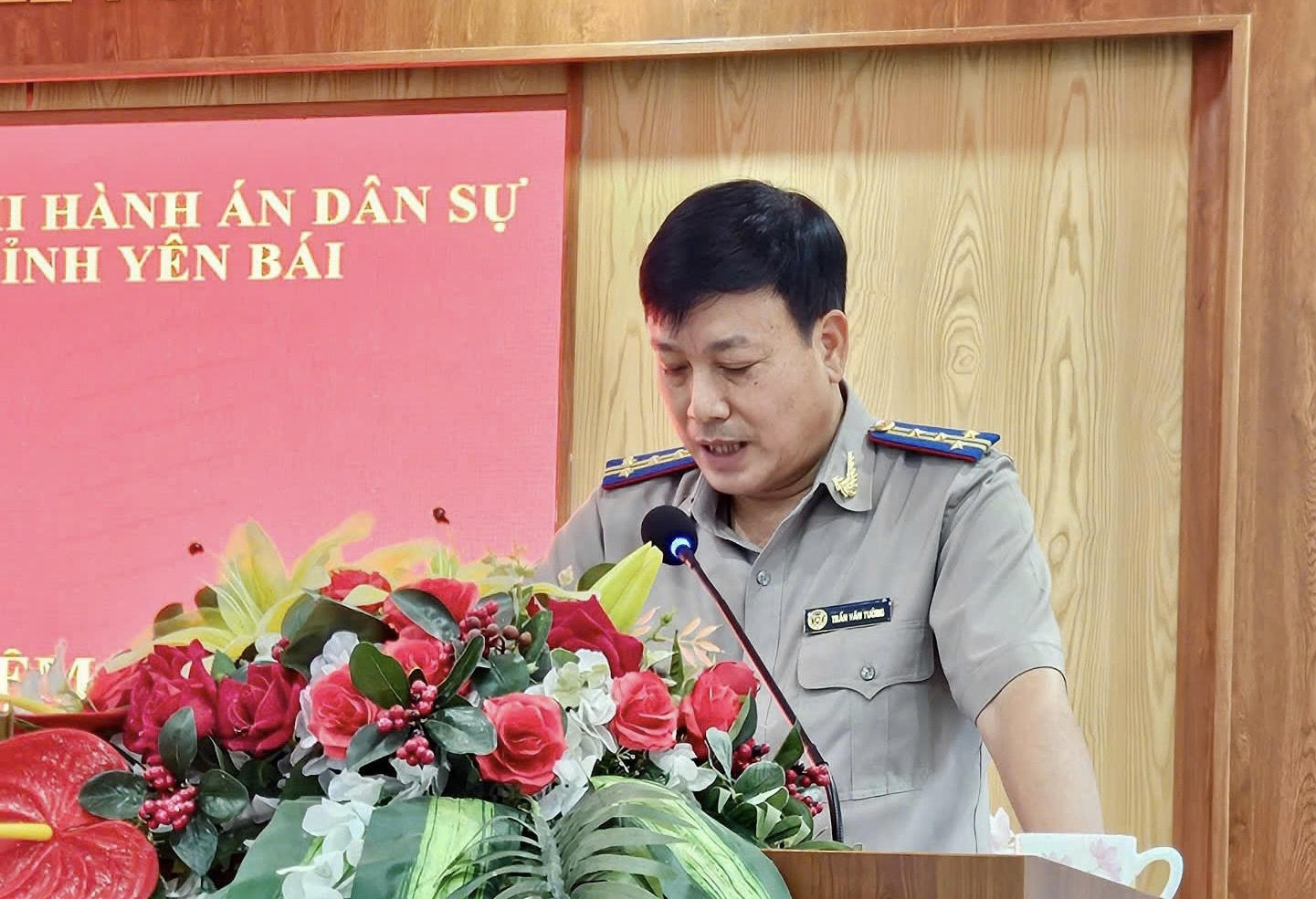 Ông Trần Văn Tường, Cục trưởng Cục THADS tỉnh Yên Bái phát biểu tại hội nghị. |