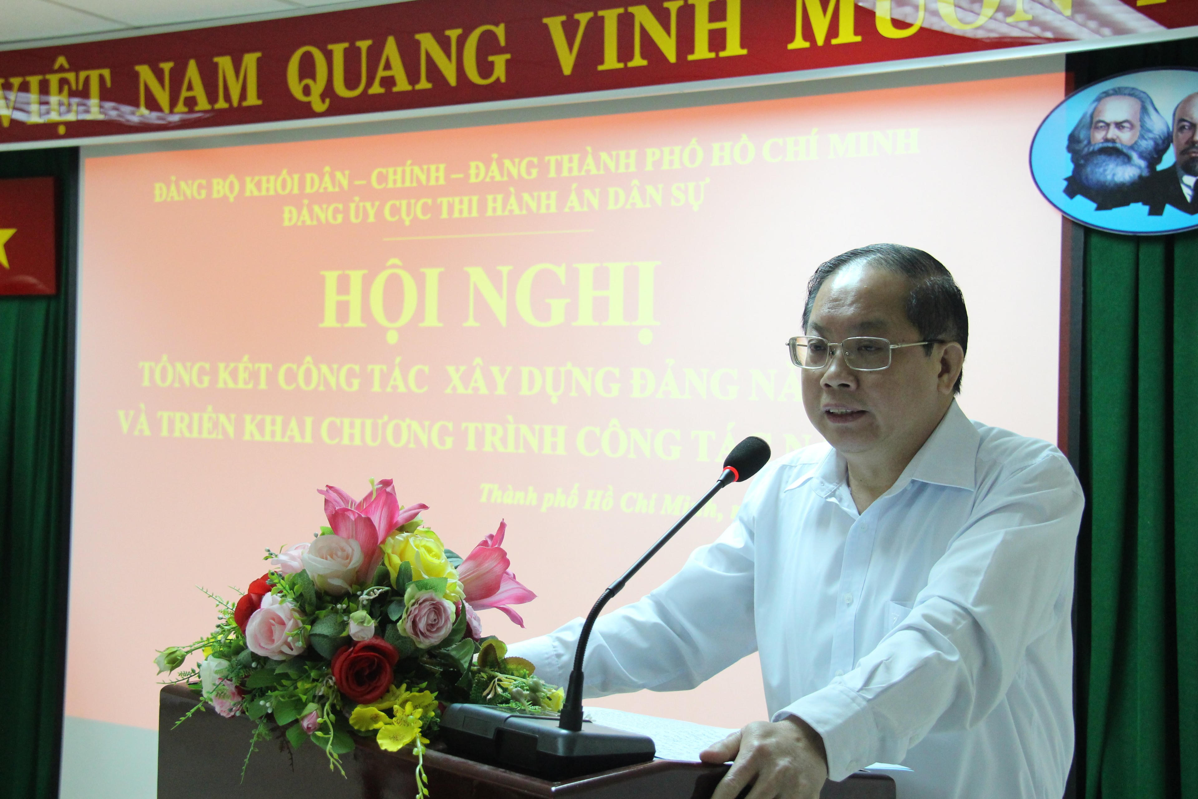 Về công tác xây dựng Đảng đã được thể hiện tại Nghị quyết của Đảng bộ, các chi bộ trực thuộc, ngay từ đầu năm Đảng ủy đã xây dựng kế hoạch thực hiện, đến nay đã phát triển được 02 đảng viên mới, 02 trường hợp chờ Đảng ủy Khối xem xét kết nạp; 01 trường hợp chờ kết quả xác minh của địa phương. Hàng năm, Đảng ủy Cục đều lãnh đạo chính quyền xây dựng kế hoạch kiểm tra công tác thi hành án hàng năm, từ đó, chỉ đạo chấn chỉnh, khắc phục các thiếu sót, hạn chế, vi phạm; Yêu cầu tổ chức kiểm điểm, xem xét trách nhiệm các trường hợp vi phạm; Có giải pháp tăng cường hiệu quả phối hợp với các cơ quan có liên quan và chính quyền địa phương để tháo gỡ khó khăn trong công tác thi hành án dân sự. Đảng ủy cũng lãnh đạo, chỉ đạo các tổ chức công đoàn, đoàn thanh niên, hội phụ nữ hoàn thành nhiệm vụ, đảm bảo sinh hoạt, hoạt động phù hợp với thực tiễn và đặc thù công việc.