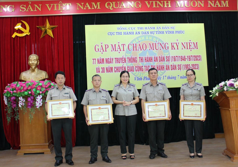 Nhân dịp này, nhiều tập thể, cá nhân đã được nhận Bằng khen của UBND tỉnh, giấy khen của Tổng cục trưởng Tổng cục THADS, Cục trưởng Cục THADS Vĩnh Phúc do có thành tích xuất sắc trong phòng trào thi đua “Nâng cao hiệu quả thi hành các vụ việc có giá trị lớn, án tín dụng, ngân hàng, án khó khăn phức tạp, các vụ việc có nhiều đơn thư, khiếu nại trên địa bàn tỉnh”.
