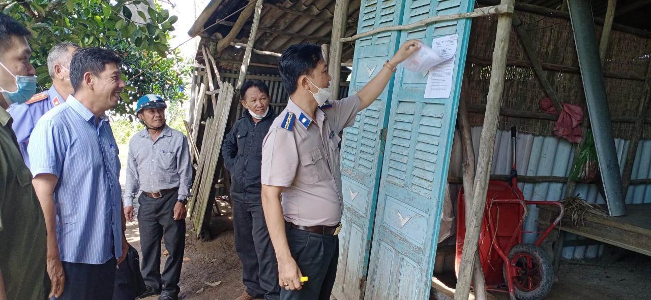 Chấp hành viên Cục THADS tỉnh Long An làm nhiệm vụ. |