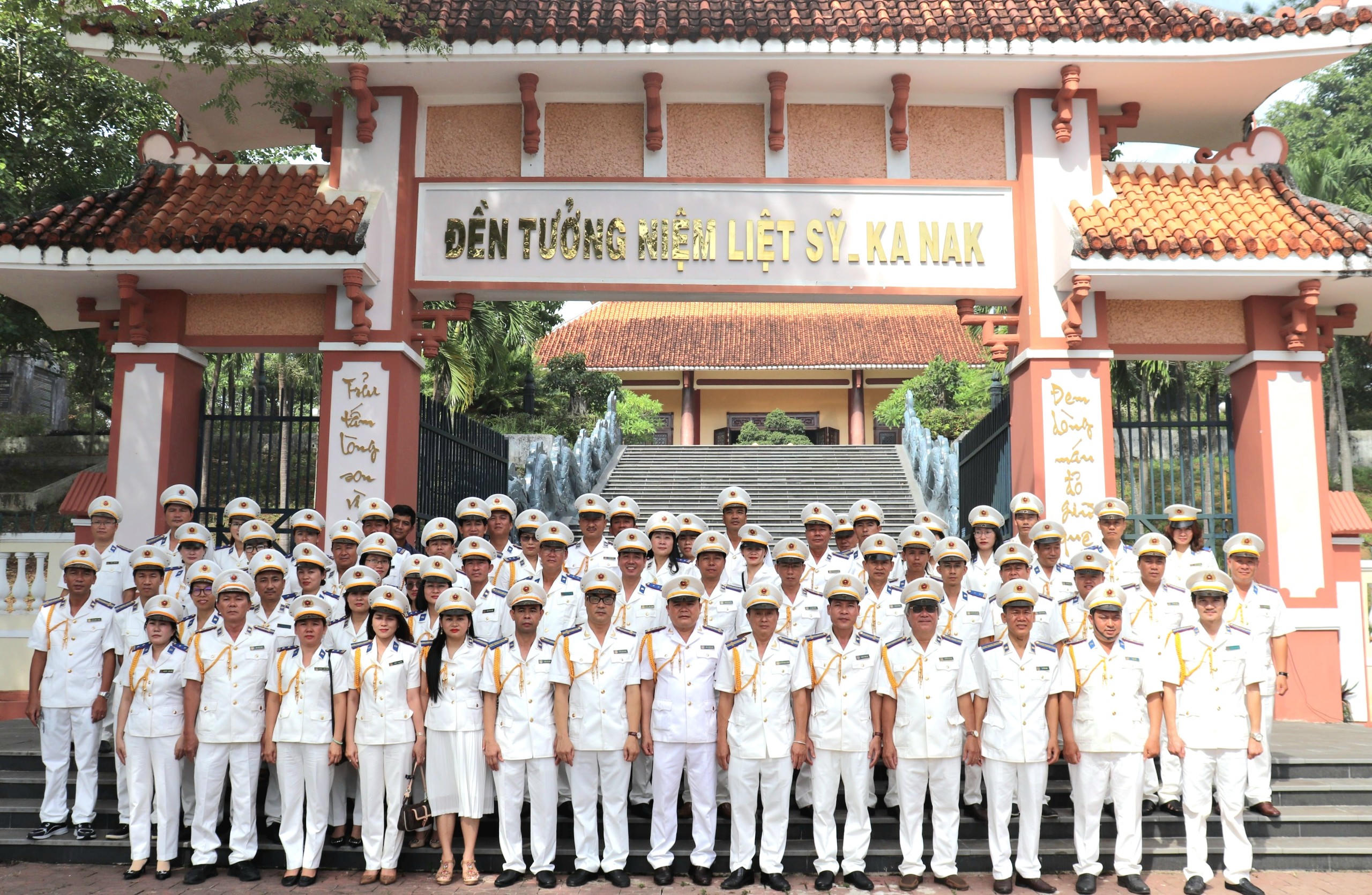 | Đoàn chụp ảnh lưu niệm tại Đền tưởng niệm liệt sỹ Ka Nak, huyện Kbang, Gia Lai. |