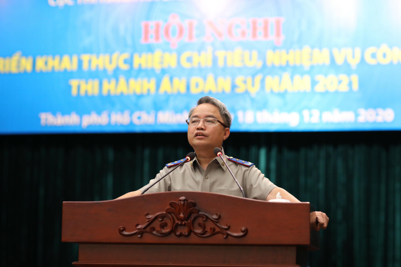 Phát biểu chỉ đạo hội nghị, Tổng Cục trưởng Tổng cục THA DS Nguyễn Quang Thái đã chia sẻ: TPHCM là địa phương luôn đứng đầu cả nước cả về việc và tiền được thụ lý hàng năm. Do đó, có đóng góp rất lớn đến việc hoàn thành chỉ tiêu, nhiệm vụ của cả hệ thống. Được sự quan tâm, lãnh đạo, chỉ đạo của Lãnh đạo Thành ủy, UBND các cấp và sự nỗ lực phấn đấu không ngừng của công chức, người lao động các cơ quan THADS, năm 2020, các cơ quan THA DS TP.HCM đã đạt được nhiều thành quả. Thay mặt cho ban lãnh đạo Bộ Tư pháp, Tổng Cục trưởng đánh giá cao, ghi nhận, biểu dương sự nỗ lực cố gắng của toàn hệ thống THA DS, đặc biệt là THA DS TPHCM trong bối cảnh đặc thù của năm 2020. Kết quả của năm 2020 còn ý nghĩa hơn, đánh dấu cả nhiệm kì 2016 -2020.