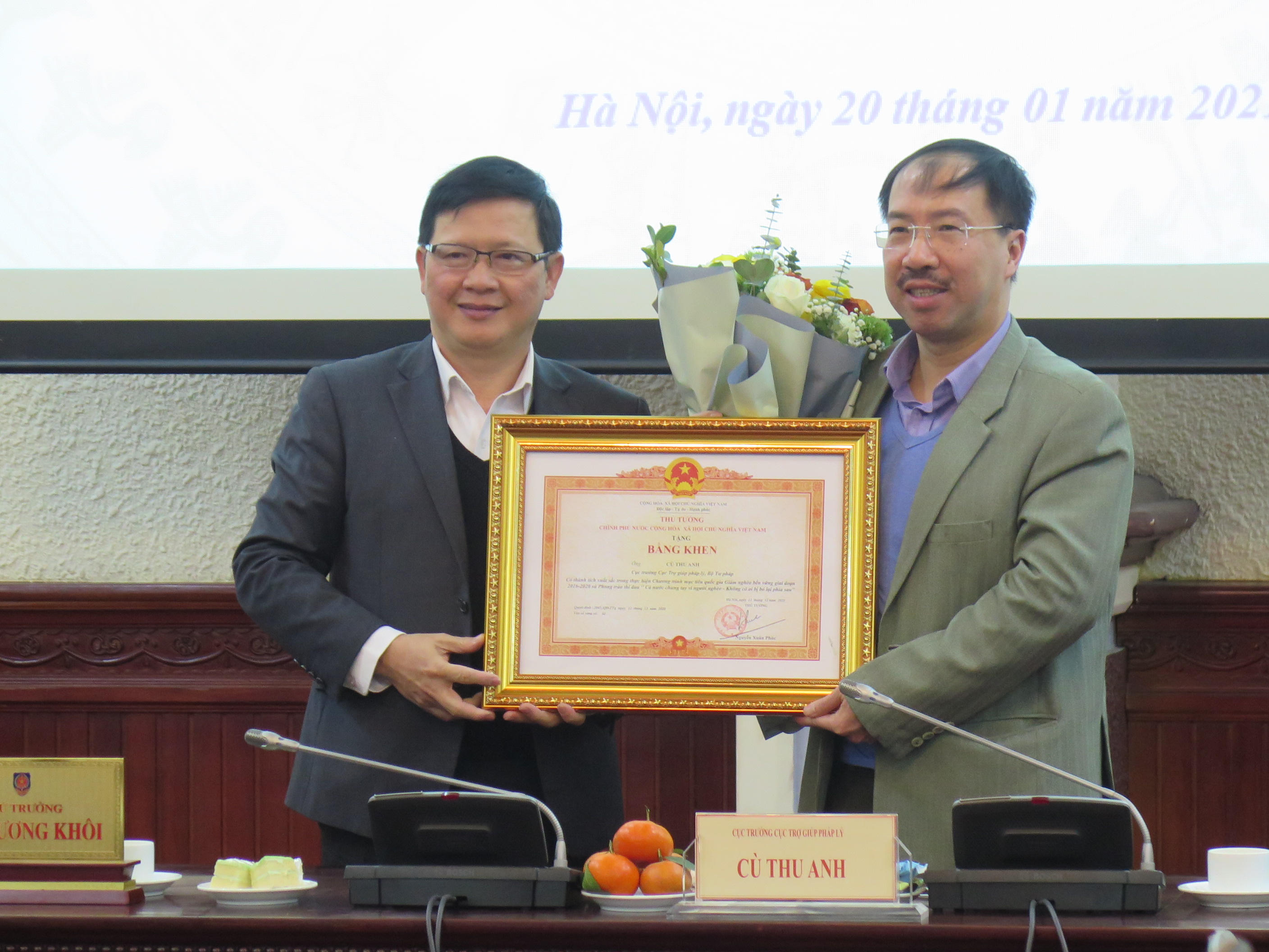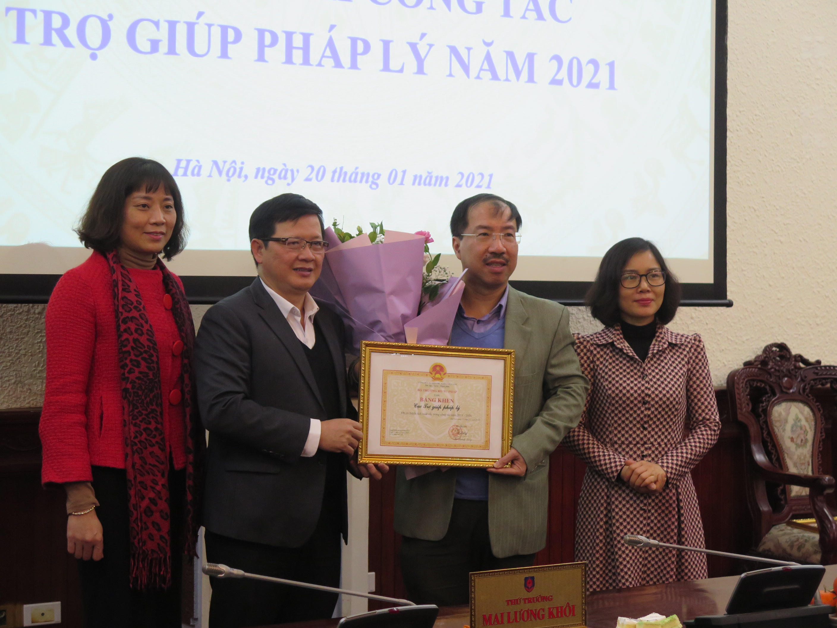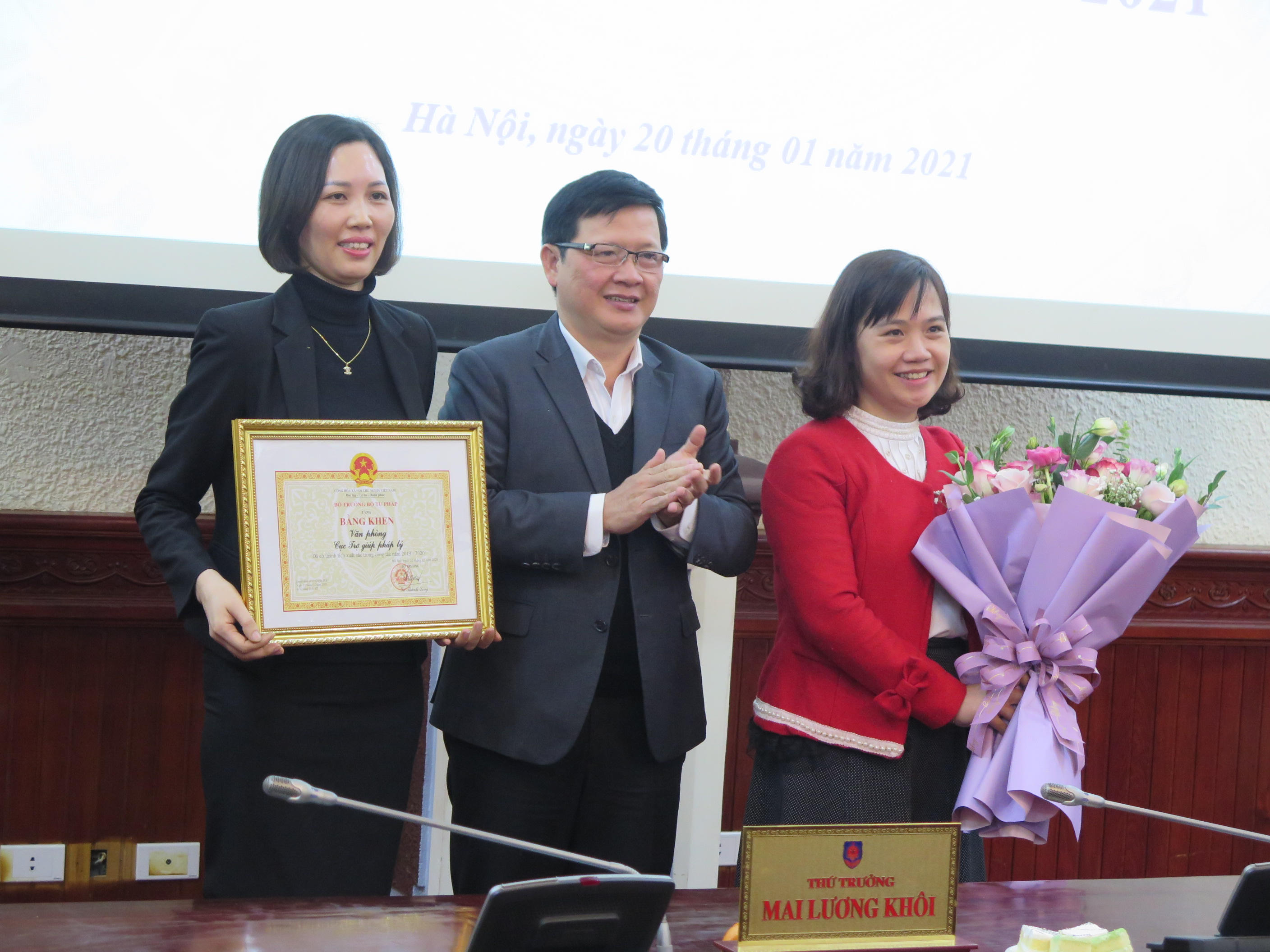 Cũng tại Hội nghị, Thứ trưởng Mai Lương Khôi đã trao Bằng khen của Bộ trưởng Bộ Tư pháp cho 2 tập thể và 3 cá nhân có thành tích xuất sắc trong công tác và danh hiệu Tập thể lao động xuất sắc 2 tập thể.