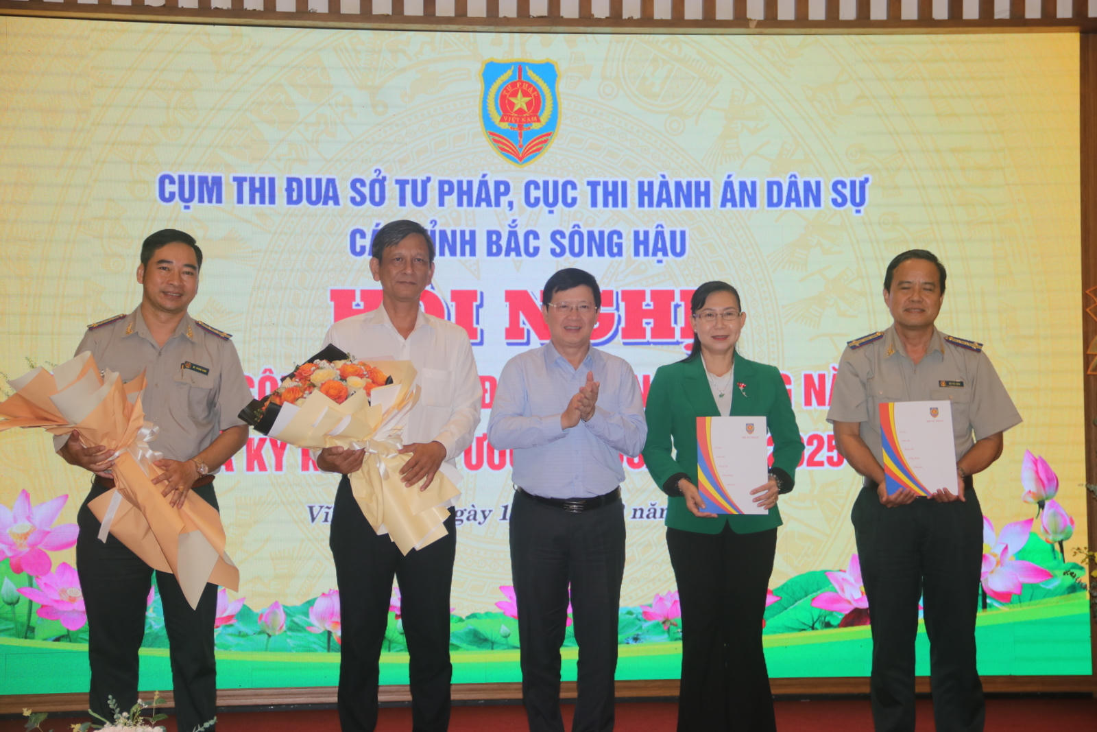 Hội nghị cũng công bố quyết định về việc cử và giao nhận nhiệm vụ Trưởng, Phó cụm thi đua, Khối thi đua năm 2025. Theo đó, bà Giám đốc Sở Tư pháp tỉnh Long An làm Cụm trưởng, Cục trưởng THADS tỉnh Long An làm Cụm phó.