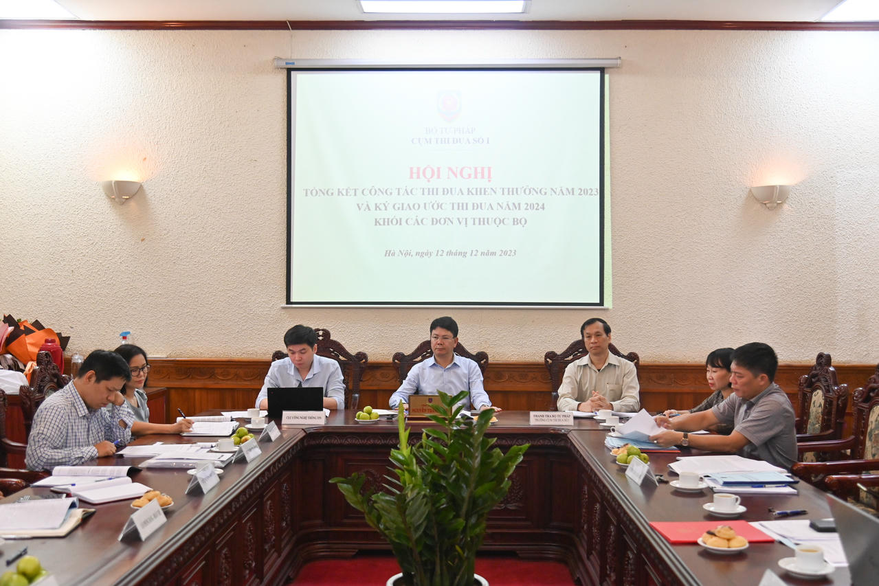 (PLVN) -Chiều 12/12, Cụm Thi đua số I, Cụm Thi đua số IV, Bộ Tư pháp đã tổ chức Hội nghị Tổng kết công tác thi đua khen thưởng năm 2023 và ký kết giao ước thi đua năm 2024 khối các đơn vị thuộc Bộ.
