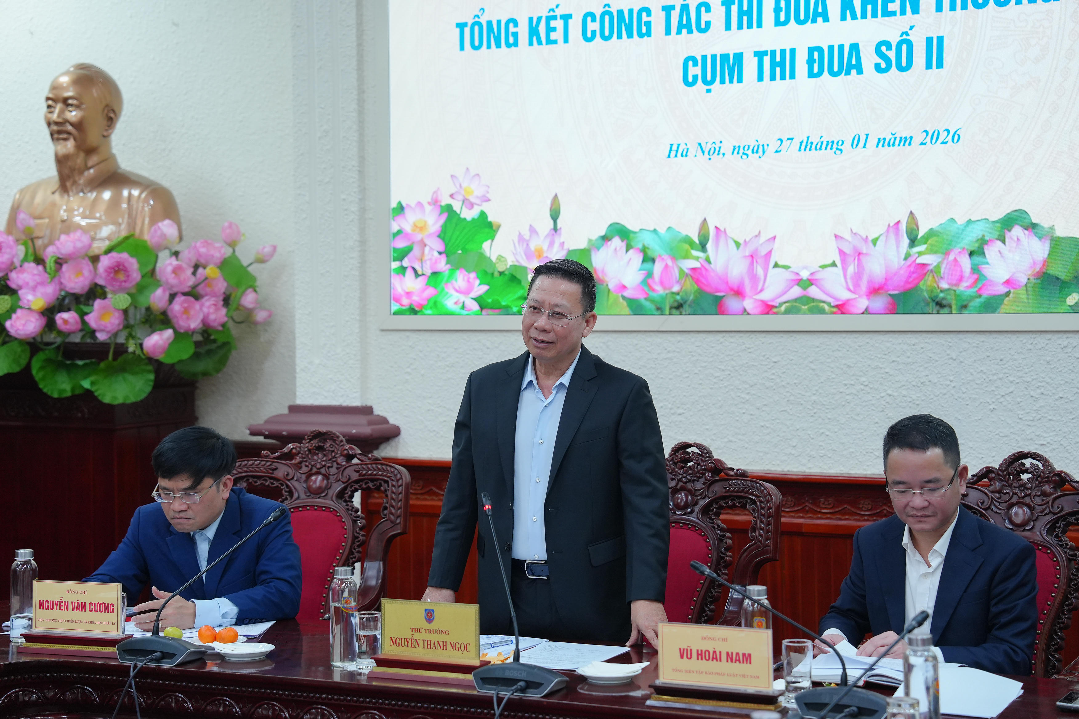 Thứ trưởng nhấn mạnh, Cụm thi đua số II là cụm hội tụ các đơn vị làm công tác báo chí, xuất bản, nghiên cứu và đào tạo, có tính liên thông, hỗ trợ lẫn nhau rất cao; đồng thời sở hữu đội ngũ chuyên gia, nhà khoa học, cán bộ có trình độ chuyên môn sâu, là nguồn lực quan trọng của Bộ. Trong thời gian qua, Cụm luôn giữ vững truyền thống đoàn kết, phối hợp chặt chẽ, đẩy mạnh phong trào thi đua.