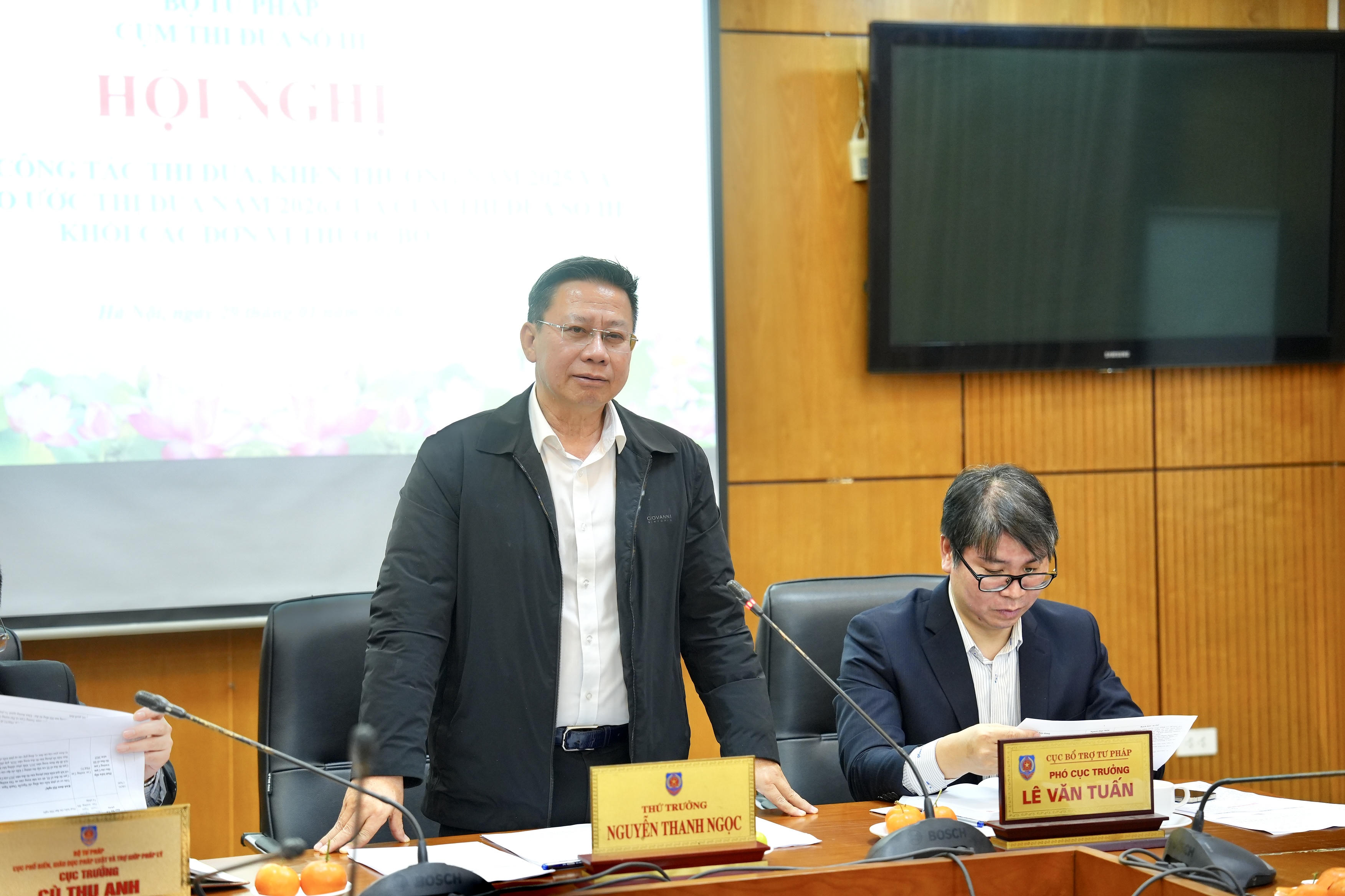 (PLVN) - Chiều 29/1, Cụm thi đua số III - Bộ Tư pháp đã tổ chức Hội nghị Tổng kết công tác thi đua khen thưởng năm 2025 và ký giao ước thi đua năm 2026 dưới sự chủ trì của Thứ trưởng Nguyễn Thanh Ngọc.