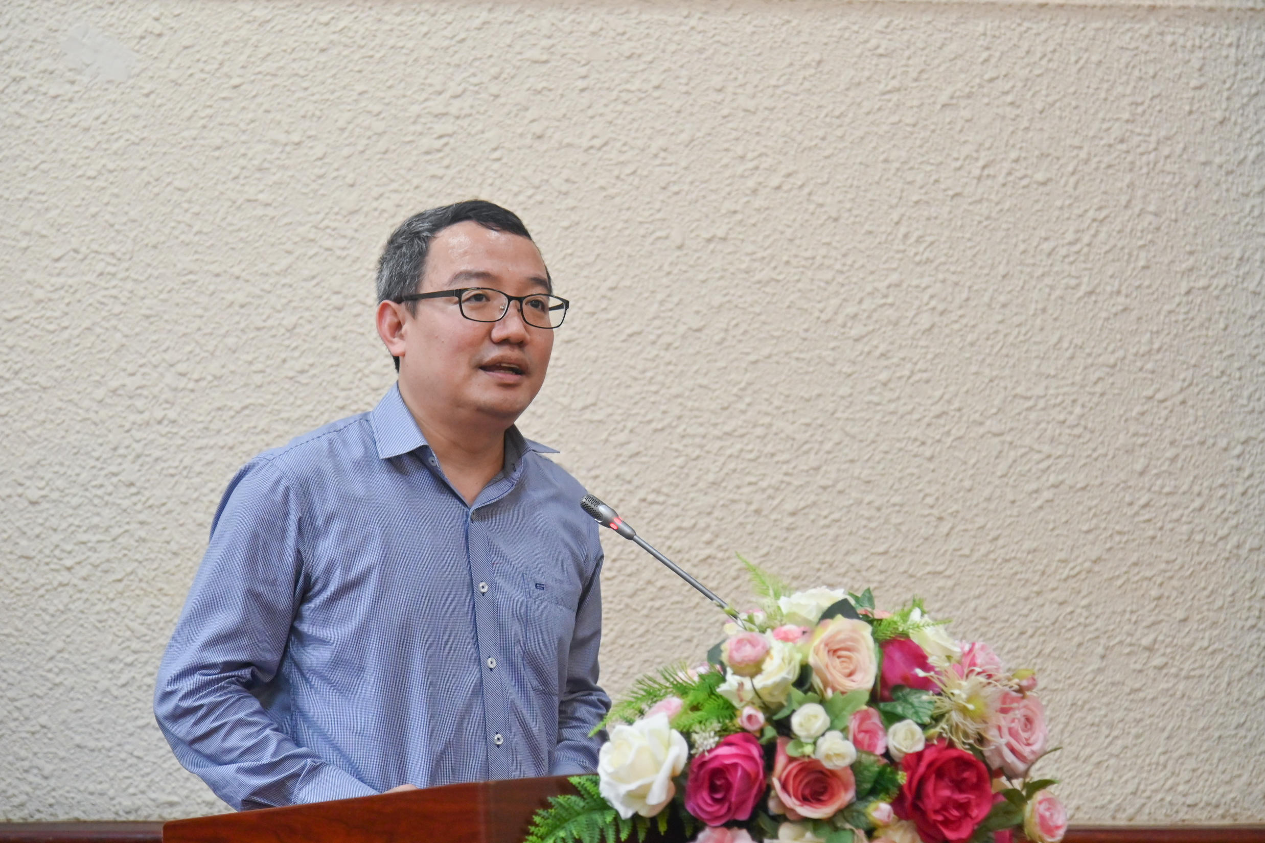 Ông Hoàng Xuân Hoan – Phó Cục trưởng Cục Kiểm tra văn bản quy phạm pháp luật báo cáo tổng kết phong trào thi đua năm 2023. |