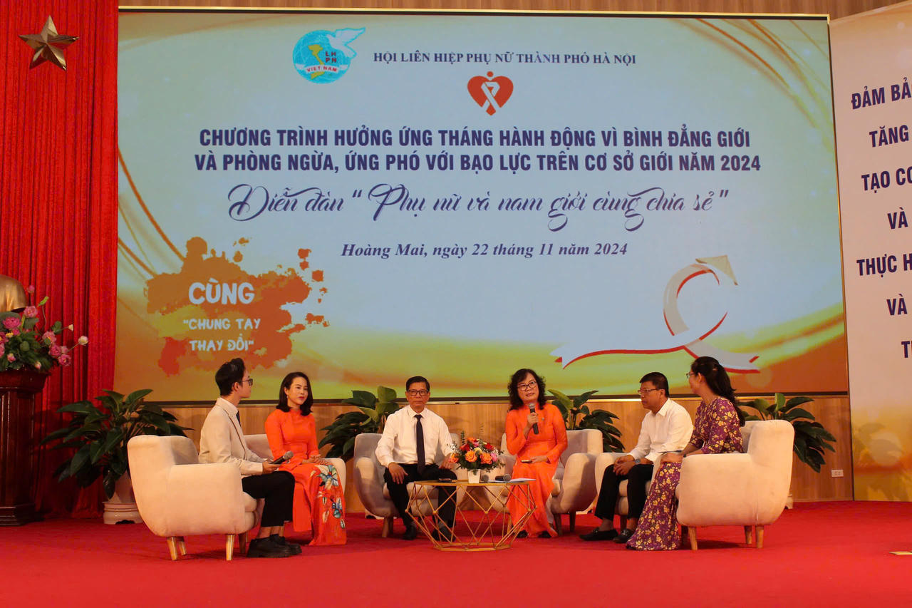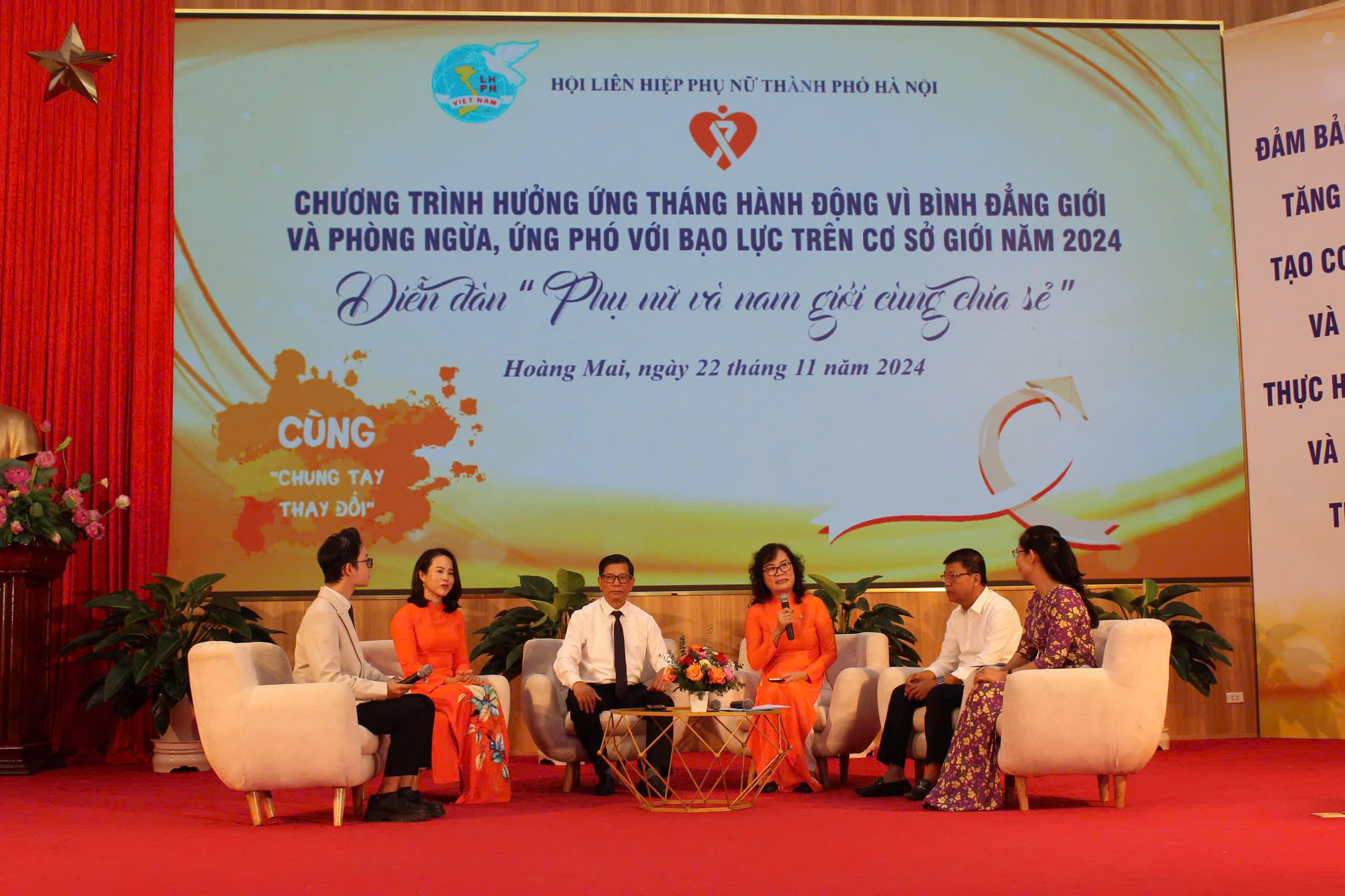 Nhân Tháng Hành động vì bình đẳng giới và phòng ngừa, ứng phó với bạo lực trên cơ sở giới, ngày 22/11/2024, Hội Liên hiệp phụ nữ TP Hà Nội tổ chức diễn đàn “Phụ nữ và nam giới cùng chia sẻ” với mong muốn truyền tải các thông điệp về bình đẳng giới và phòng ngừa, ứng phó với bạo lực trên cơ sở giới, để phụ nữ và trẻ em luôn được sống trong tình yêu thương, được chăm lo phát triển toàn diện; bình đẳng giới là thước đo của sự văn minh, tiến bộ và công bằng xã hội.