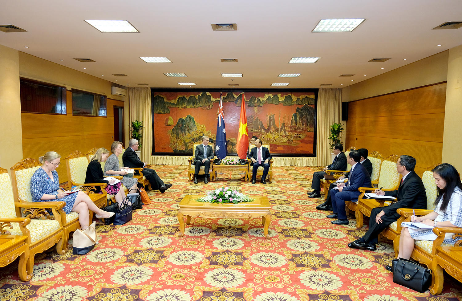 Thủ tướng Nguyễn Xuân Phúc cho biết, trên đà phát triển tốt đẹp của quan hệ Đối tác Chiến lược, Việt Nam đang nỗ lực thực hiện các nội dung trong Tuyên bố chung với Australia đã ký kết tháng 3/2018 vừa qua. Kim ngạch thương mại hai chiều không ngừng tăng lên. Trên các diễn đàn khu vực và quốc tế, hai nước cũng thường xuyên phối hợp chặt chẽ vì mục tiêu hòa bình và phát triển.