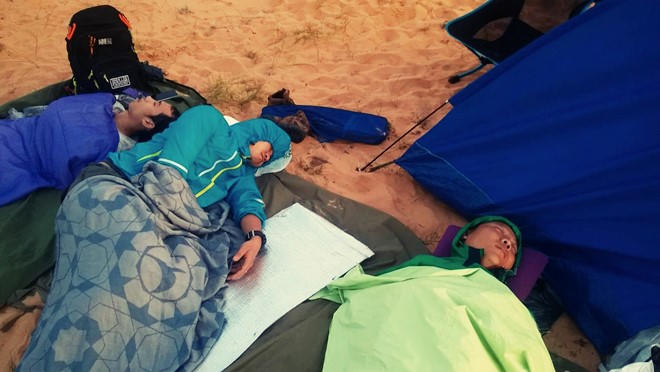 Do xác định trước chuyến đi cực kỳ nóng và mất sức, mất nước nhanh khi băng qua chảo lửa, cộng với việc mỗi bước chân sẽ nặng nề hơn vì cát lún, mình cùng mọi người trong đoàn chuẩn bị rất kỹ càng.