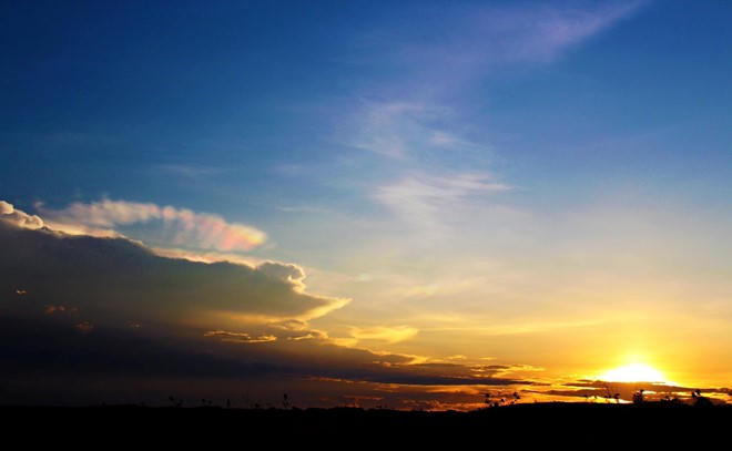 Mây ngũ sắc dưới bóng hoàng hôn đang dần buông xuống.