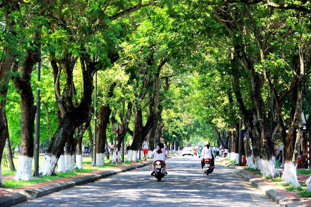 Được biết đến là đô thị có mật độ cây xanh cao nhất cả nước với 64.000 cây xanh đường phố, thành phố Huế đã vượt tiêu chuẩn về cây xanh đối với đô thị loại 1. Hầu hết các tuyến đường ở Huế hiện nay đều được phủ bóng bởi cây xanh. Có cả những tuyến đường dày đặc cây cổ thụ như 23 Tháng 8, Đoàn Thị Điểm, Lê Duẩn, Ngô Quyền,..Ngoài cây xanh trên các tuyến đường, Huế còn có nhiều công viên cây xanh lớn nhỏ được bố trí trải đều khắp thành phố, dọc các con sông, hình thành nên một hệ thống cảnh quan khá lý tưởng. Đó là chưa kể đến nhiều nhà vườn với lối kiến trúc xanh, cây xanh được trồng ở các công sở, nhà dân. Đây được xem là “lá phổi xanh” của thành phố Huế.